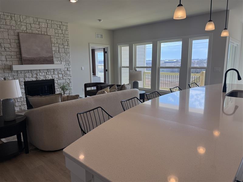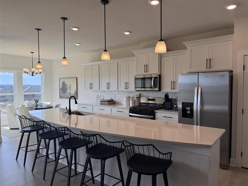 Experience modern elegance in Dayton Creek with this D.R. Horton home. This home is equipped with a 3-car garage, James Hardie® siding with stone accents, 9’ ceilings, and RevWood flooring throughout the main living areas. The chef’s kitchen features quartz countertops, tile backsplash, and Whirlpool® stainless steel appliances. Retreat to a luxurious primary suite with tiled shower and double quartz vanity. Cutting-edge Smart Home technology makes daily living effortless. Energy-efficient systems, garage door openers and a covered porch with landscaped yard make this home the perfect blend of comfort, technology, and style. With D.R. Horton, you get a home warranty, the most recent building codes, more energy efficiency and lower maintenance. Don’t forget to ask about current incentives! Photos, renderings, and 3D Walkthrough's maybe of a different home but on the same floor plan to show finish quality only.** Don’t miss your chance—schedule a tour today and see why this home is the perfect mix of luxury and convenience!