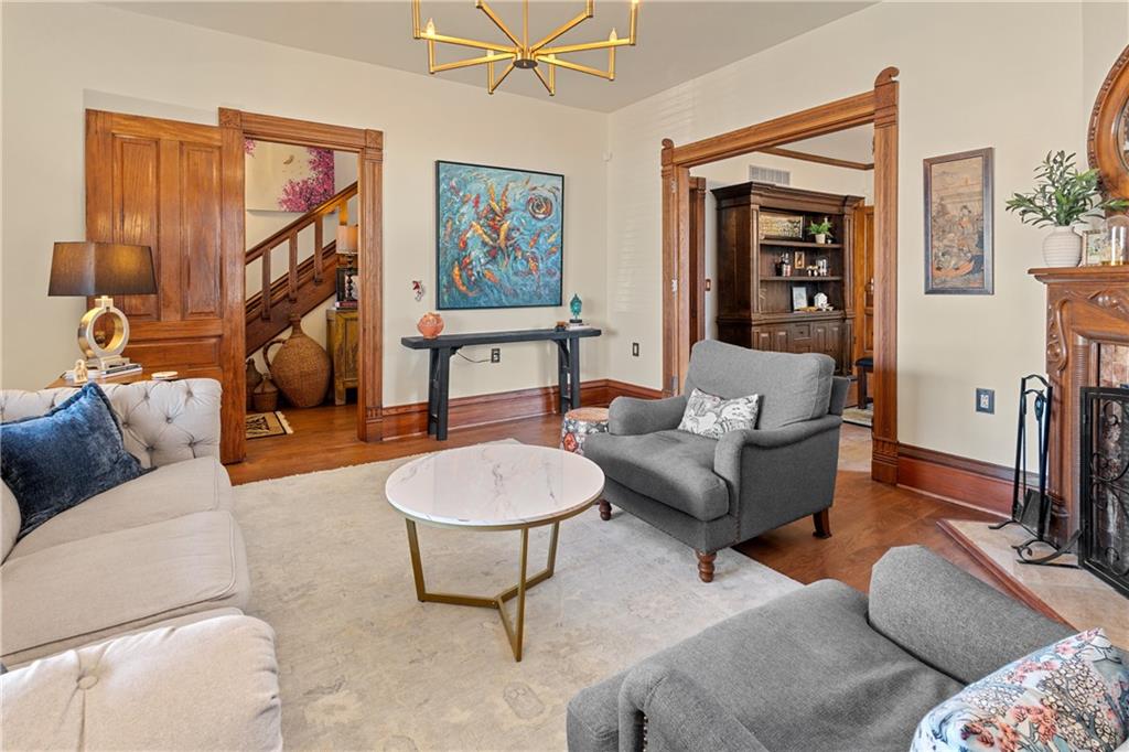Perfect opportunity to live in a majestic home that also offers a short term rental income opportunity in the carriage house currently licensed by the city. The entire home was previously used as a licensed Bed and Breakfast, or live in it as a single family home as the current owners do. Lots of possibilities! One of a kind house listed on the National Register of Historic Places. The Hulse-Daughters house, built in 1892, by Topeka architect Herman McClure Hadley. The house is one of the few remaining American Queen Anne houses left in Kansas. Built with craftsmanship and charm, meticulously restored, and recently brought up to modern conveniences and livability. Located within walking distance from Poyntz & the downtown shops. Enjoy your favorite beverage on the wrap around porch. The house features a newly remodeled kitchen, refinished hardwood floors, estate fencing, & new closet systems in the bedrooms. Each bedroom has its own ensuite bathroom. There are two office spaces in the basement for a private work from home space. Don't miss the amazing separate apartment above the oversized two car garage. The current owners are operating the apartment as a short-term rental, and guests love the proximity to downtown, the Museum of Art & Light, & the Flint Hills Discovery Center. Seller can provide revenue reports on request. Or use it as an art studio, separate guest suite, private office space, the possibilities are endless! ***The apartment rooms and square footage are not included in the total sf and room counts. Seller is a licensed agent in the states of Kansas and Missouri.