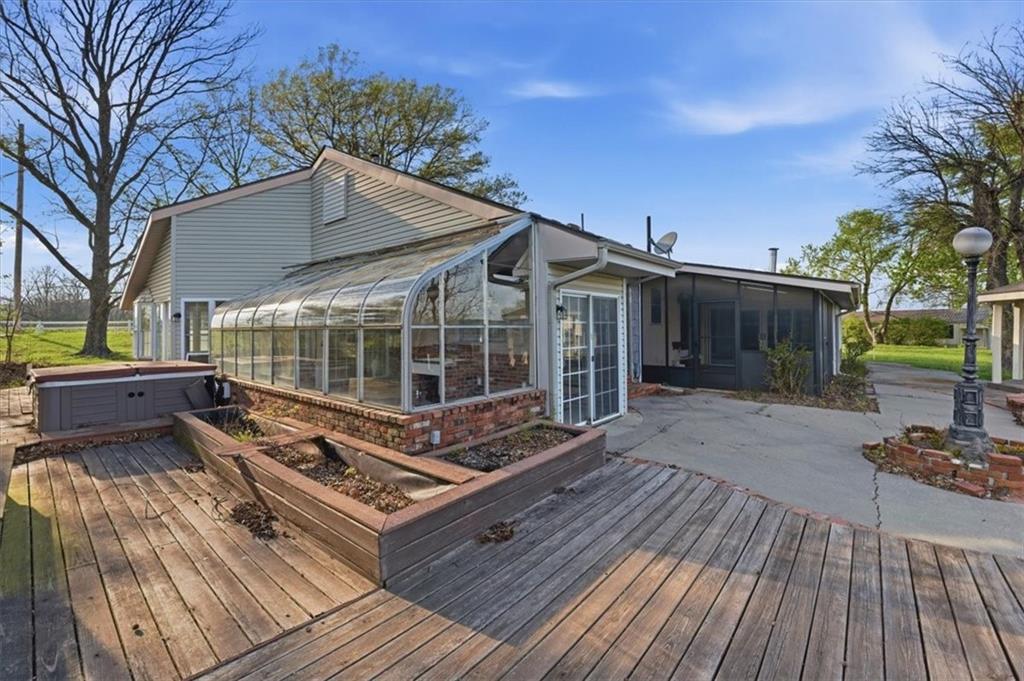 This 5-acre country property is one of a kind! It offers space, versatility and an impressive lineup of outbuildings. The ranch home has new carpet and a new roof, with 2 large bedrooms plus a spacious kitchen. Multiple sunroom additions and sculptured outdoor living spaces allow for plenty of natural light. Enjoy a wrap-around back deck and gazebo with peaceful views. Property includes: -- large barn/stable with stalls and a connected additional dwelling unit with bedroom, full bath and kitchen (ideal for guests or rental); -- detached 3-car garage with office potential, set up for heat; -- RV storage building with oversized bay and extra 'toy' storage; -- greenhouse; -- multiple, high-quality chicken coops. This property is perfect for a hobby farm, home-based business or multi-generational living. Peaceful setting just minutes from town. See second photo for proposed survey. The pond is NOT INCLUDED in the 5-acre tract.