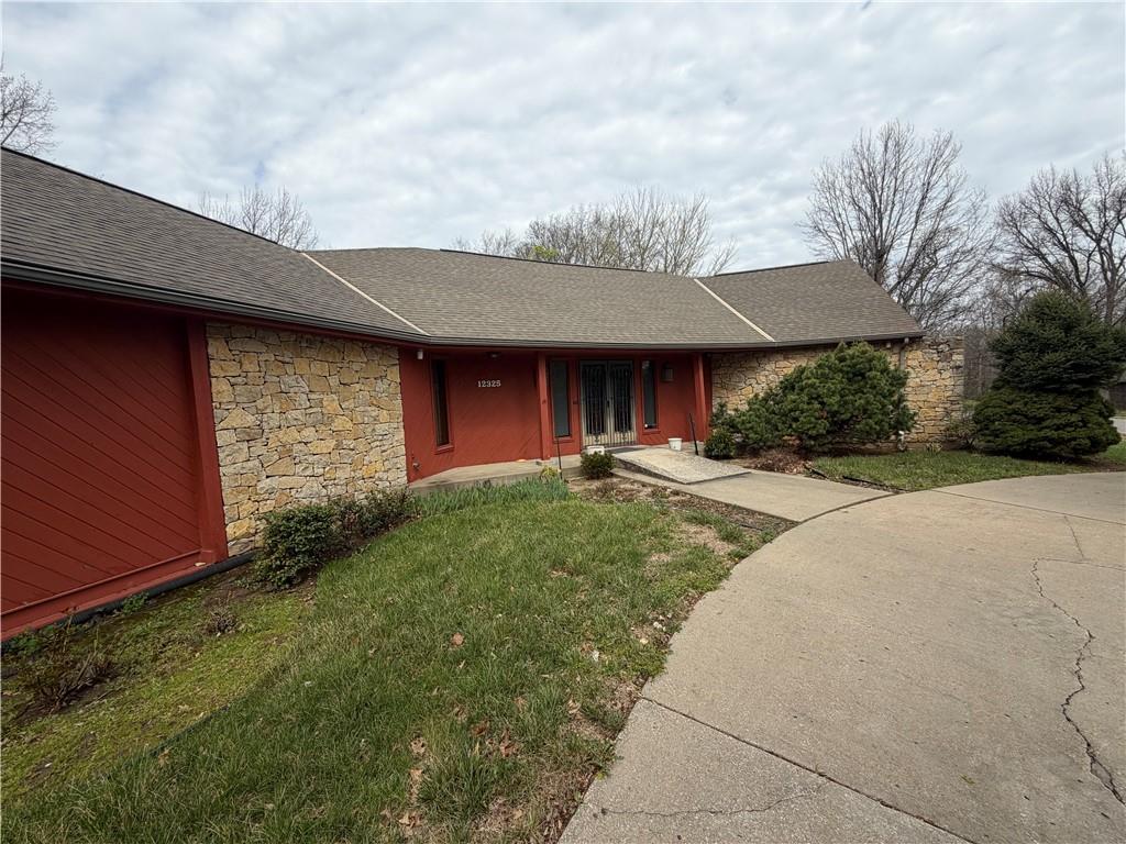 Excellent location in Piper School District. Close to Dub’s Dread Golf Club and to the Chief’s new stadium site. Nice size corner lot with circular driveway. Great room has a cathedral ceiling and large fireplace. 3 bedrooms on main level. Master bedroom has cathedral ceiling and en-suite bathroom with accessible walk-in shower. 3 nonconforming bedrooms in the basement plus large family room and full bath. Fireplace also in the family room downstairs. Two full bathrooms on main floor plus half bath off of the laundry room on main level. Breakfast room off of kitchen. Appliances stay. Several sliding doors from the main level out to the wraparound deck. Lots of unfinished storage space and workshop in basement. House has good bones, but needs TLC.