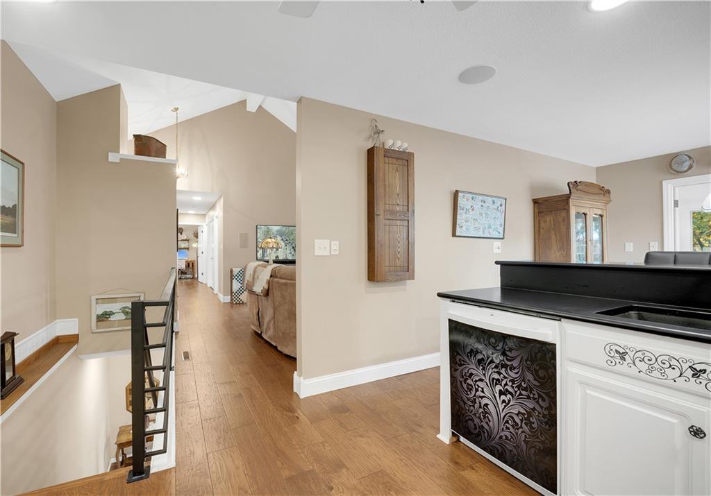 Welcome to 662 Grandview Lane in Linn Creek — a beautifully updated retreat in the heart of Lake of the Ozarks! Nestled on approximately 3 acres, this stunning 5-bedroom, 3 full bath home offers the perfect blend of seclusion, space, and lake-area convenience. Step inside to soaring ceilings, oversized windows, gorgeous lighting, a built-in sound system, and rich hardwood floors that create a warm yet elevated feel throughout. The living room features a cozy gas fireplace and flows seamlessly into the show-stopping kitchen complete with quartz countertops, quality cabinetry, and thoughtful design details that make everyday living and entertaining effortless. The full finished basement expands your living space with room for guests, recreation, or multi-generational living. Enjoy peaceful mornings or relaxing evenings in the sun porch or on the covered deck overlooking the beautifully landscaped grounds. Outdoors, you’ll find meticulous attention to detail — an irrigation system, raised garden beds, lush landscaping, and a custom firepit perfect for gathering with friends and family. A short distance away, enjoy access to the community dock with your own slip, making lake days simple and convenient. Car enthusiasts and hobbyists will appreciate both the attached and detached garages, plus a dedicated RV parking spot for all your lake toys. This property truly checks every box — location, space, updates, and lifestyle. Don’t miss your opportunity to own a slice of paradise at Lake of the Ozarks!