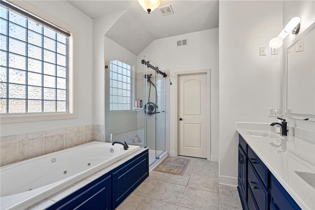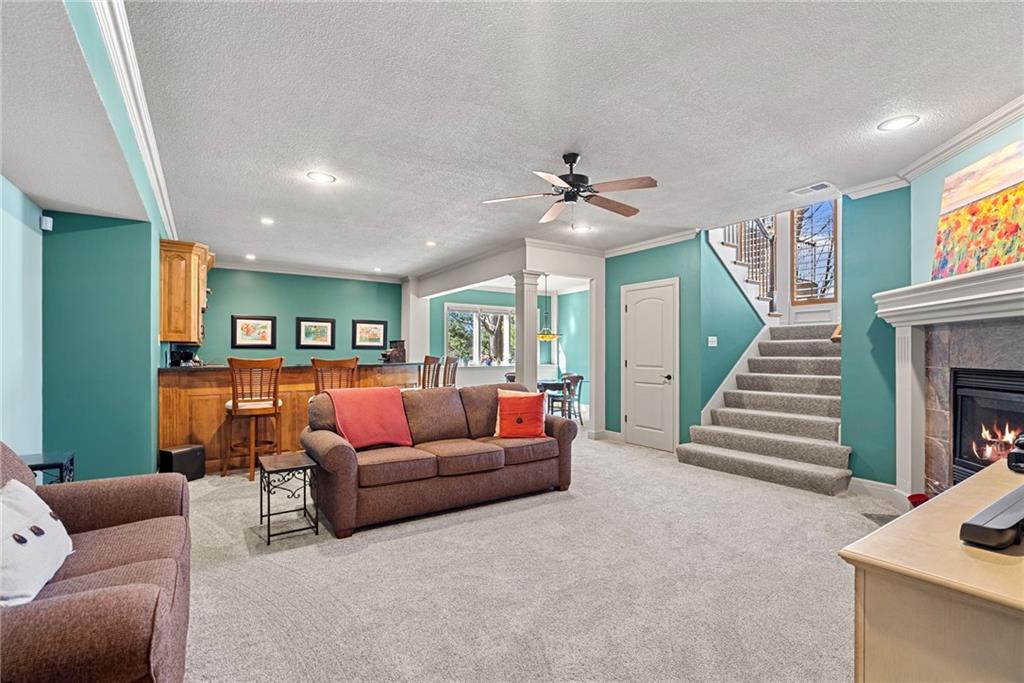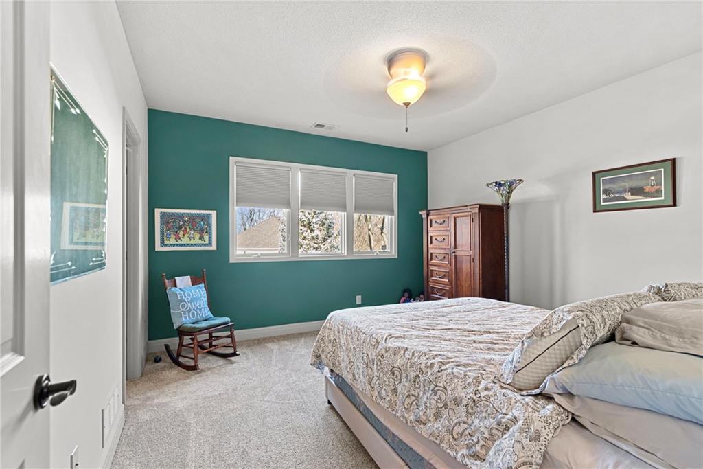 This maintenance-provided ranch villa in The Links at Cedar Creek offers the ultimate in main-level convenience and resort-style luxury. The thoughtful layout features a spacious primary suite with a fully updated spa-like bathroom, alongside open living areas with classic hardwoods and an abundance of natural light. The gourmet kitchen has been elevated with updated countertops and a high-performance induction range, while the living space extends outdoors to a newly updated composite deck, perfect for low-maintenance relaxation. Ideally situated just a short, scenic walk from the neighborhood dock and boat access, this home provides effortless entry to the 65-acre Shadow Lake for sailing and fishing. The finished basement adds a third bedroom and full bath, centered around an expansive bar that serves as a fantastic foundation for entertaining. Additionally, the massive unfinished storage area and three-car garage offer incredible potential for a workout room or a fourth non-conforming bedroom. Life in The Links feels like a permanent vacation with professional lawn care and snow removal provided, allowing you more time to enjoy community pools, tennis and pickleball courts, scenic trails, and the award-winning Shadow Glen Golf Club.