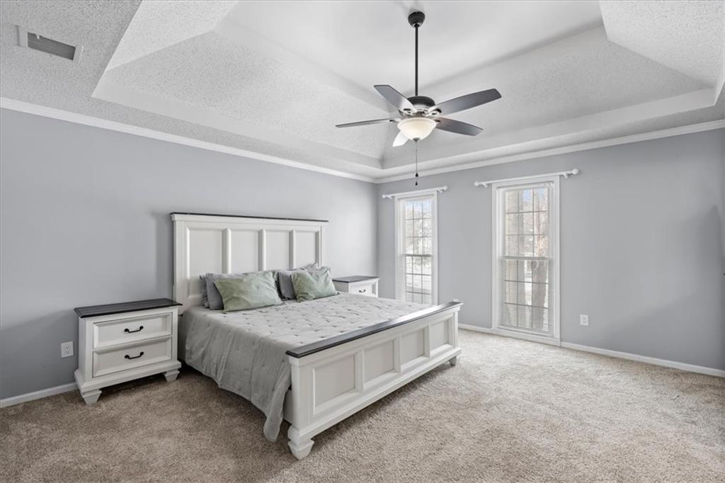 Beautiful, sun-filled two-story home in sought-after Sylvan Lake, featuring numerous updates and a large, private fenced backyard complete with a firepit and ambient lighting around the entire perimeter. This spacious home offers 4 bedrooms and 2.5 baths, including a formal dining room, a main-level office or sitting room, and a generous family room with a fireplace that opens to the updated kitchen. The kitchen boasts granite countertops, gas cooking, a walk-in pantry, and direct access to the outdoor deck—perfect for entertaining. Upstairs, the primary suite features a walk-in closet, double vanities, a soaking tub, and a separate walk-in shower. Three large secondary bedrooms share a beautifully updated hall bath. The finished basement provides an additional oversized living area ideal for gatherings, movie nights, or play space. Additional highlights include new LVP flooring on the main level, new carpet on the stairs, landing, and bedrooms, landscape lighting along the backyard fence, a one-year-old HVAC system, newer windows and sprinkler system, and an indoor/outdoor stereo system. Conveniently located within walking distance to Blue Valley High School and Stanley Elementary and neighborhood lakes. Don’t miss the opportunity to make this exceptional home yours!