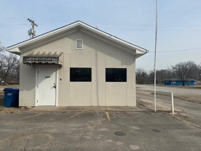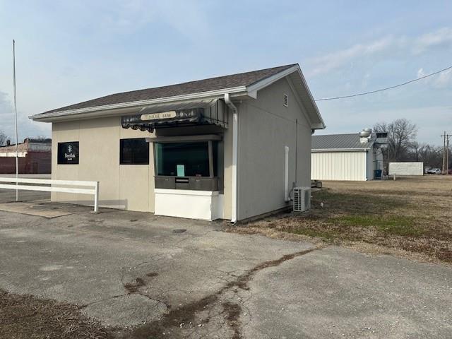 Lots of possibilities for this former drive up bank branch in a small rural community. Located on a nice size corner lot with great parking. The building is in good condition and would be perfect for a small office or just storage. It has a combination wall mounted heating/cooling unit, a half bath and a teller's window.