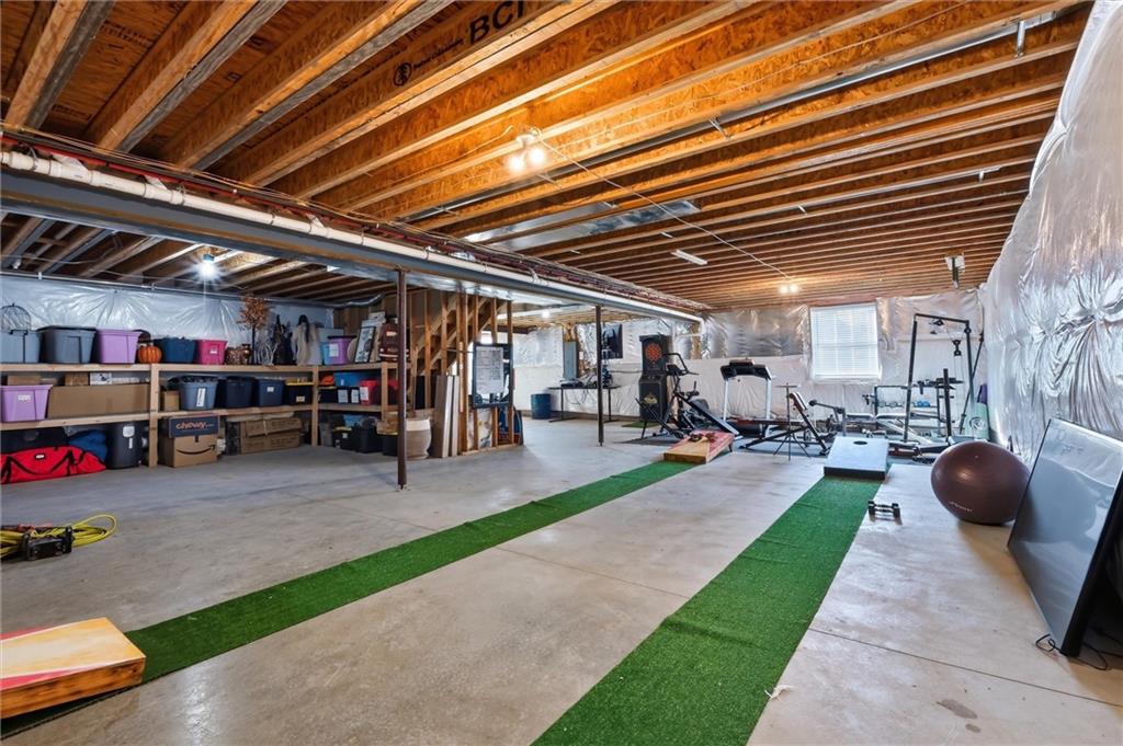 Spacious, Energy-Efficient Home with Incredible Bonus Space & 960 Sq Ft Shop - BUILT 2019 Welcome to this exceptional 4-bedroom, 3-bathroom home offering 3,078 sq ft of thoughtfully designed living space — plus an additional 1,799 sq ft unfinished daylight basement ready for your vision. With two egress windows, the basement provides endless possibilities for future bedrooms, a home gym, theater, or extended living quarters. Designed for both comfort and efficiency, this home features dual energy-efficient furnaces (serving the first and second floors separately) and two A/C units for optimal climate control year-round. Built with 2x6 exterior framing and upgraded blown insulation, you’ll enjoy reduced utility costs without sacrificing comfort. The main floor offers ultimate convenience with a spacious primary suite and laundry room. The luxurious primary bathroom includes a freestanding bathtub and a Bluetooth exhaust speaker, creating a spa-like retreat right at home. Entertain effortlessly in the formal dining room, large enough to accommodate two tables seating up to 16 guests — perfect for holidays and gatherings. The back door fully opens 12 feet wide, seamlessly connecting indoor and outdoor living to the covered porch and patio. Upstairs, a secondary living room provides flexible space for a media room, playroom, or lounge — enhanced with modern Hue lighting. Electrical fireplace capable of heating up to 1,500 sq ft add both ambiance and supplemental warmth. For hobbyists, business owners, or anyone needing serious workspace, the 24x40 (960 sq ft) metal building is a standout feature. Complete with concrete flooring, electrical, Hue lighting, a 16' garage door, and an additional 4x8' garage door, this versatile structure is ready for projects, storage, or recreational use. This property delivers space, efficiency, flexibility, and high-end touches — all in one impressive package.