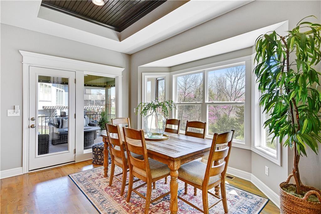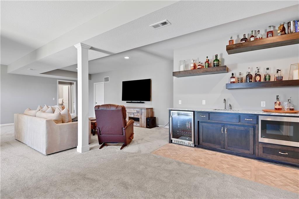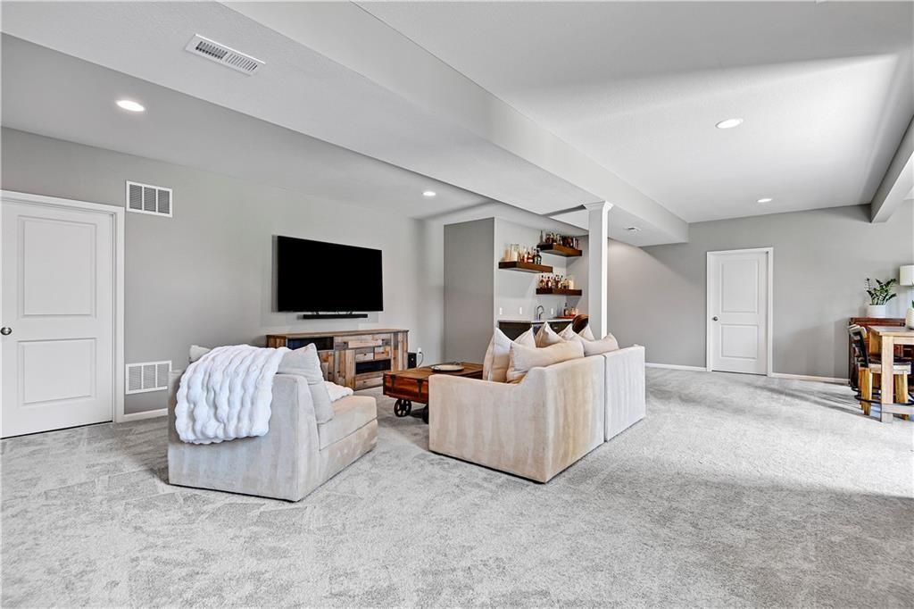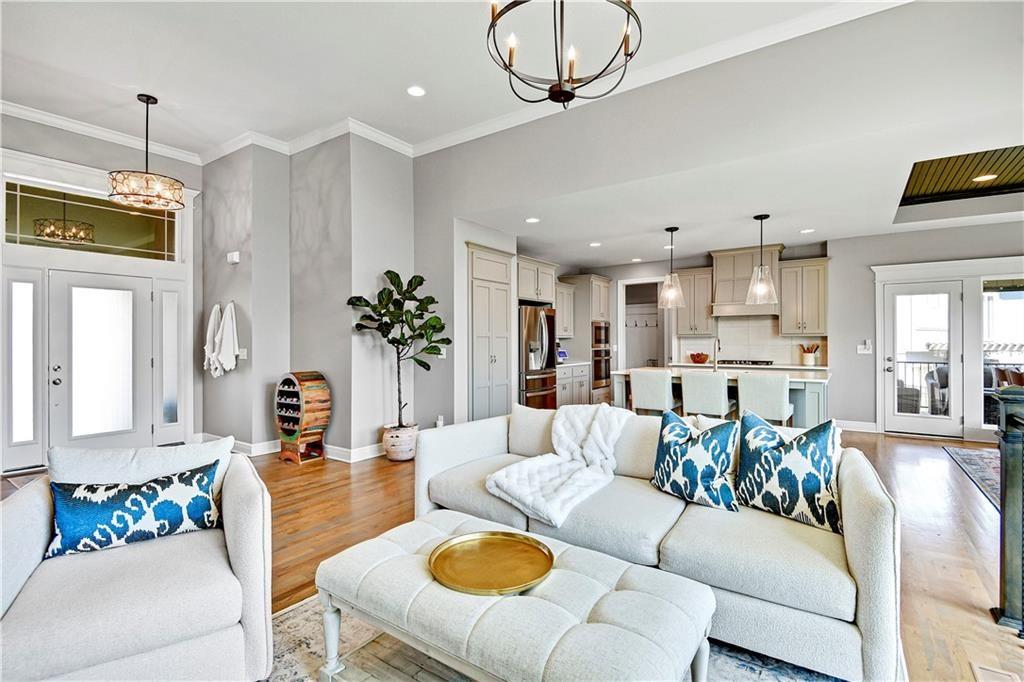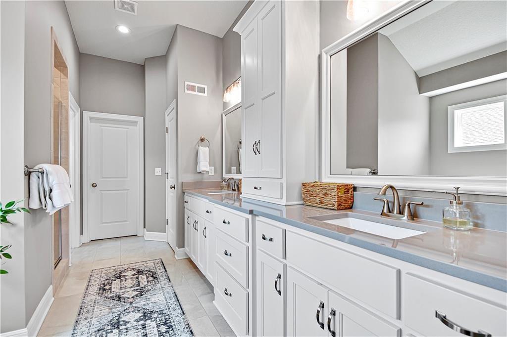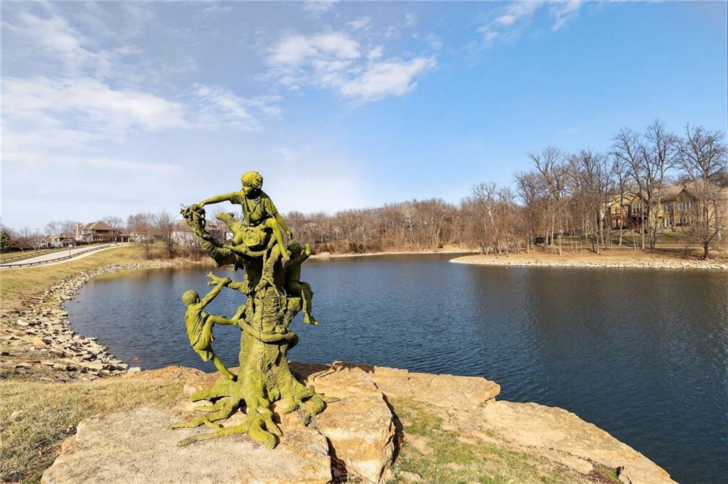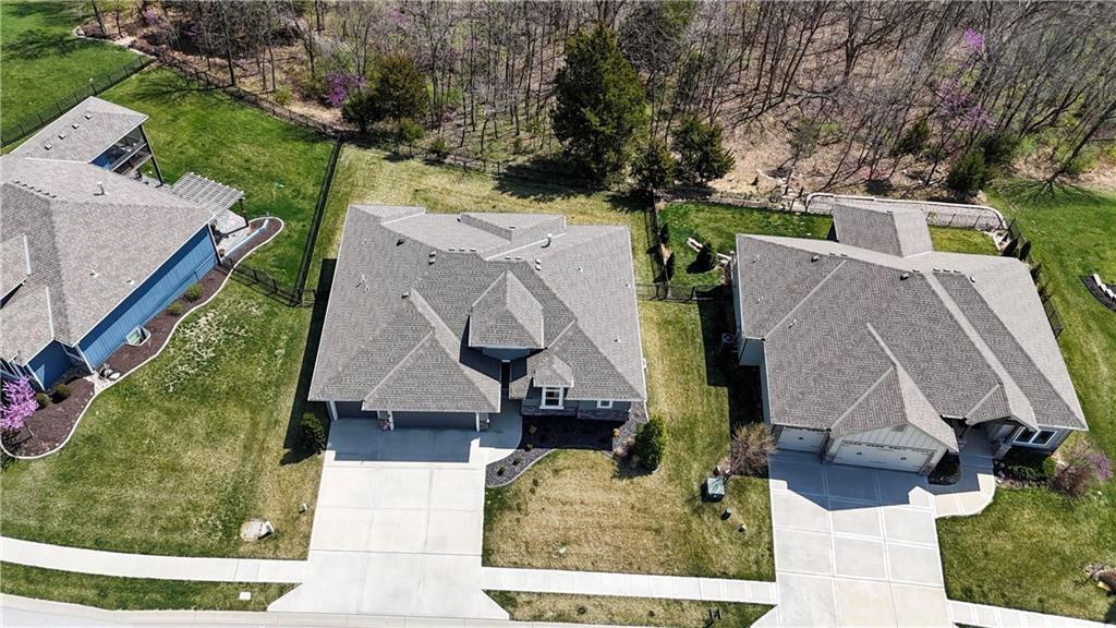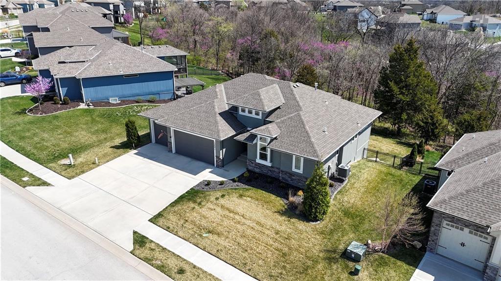 Stunning Reverse 1.5 Story in a fantastic neighborhood with fabulous amenities. This home backs to green space for privacy and views! Walk in to a wall of windows that take in the beautiful treed green space. There is an office or guest room at the front of the home and full bath. The primary bedroom is a delightful retreat with high ceilings & great views and a spacious and modern ensuite with separate tub & shower, double vanities & a huge walk-in closet. The kitchen is great for entertaining with an oversized island, neutral colors and classic design choices. You will fall in love with the covered deck that was greatly improved with an automatic, remote controlled MagnaTrack rolling screen that is engineered to withstand hurricane force winds and with the screen woven so tight it actually adds privacy (you can easily see out, but you can't see in), it blocks the sun, wind, bugs, and creates such a comfortable atmosphere that the sellers use that space year round. The walkout lower level has a wet bar area which makes the recreation room truly functional. There are two more guest rooms & a full bath and two separate storage areas. The back yard is fenced with iron fencing, so no maintenance, and strong enough to withstand a tree falling. It has 3 gates and is built in sections making it ideal for the long term. The garage floor has been epoxied. Integrated water softener system stays. Alarm system stays including window sensors. Interior freshly painted with highest grade of Sherwin Williams paint. Close to the pool & tennis, but very quiet street as there is not a lot of through traffic. Deck & railings were stained recently. All shower heads were replaced and kitchen faucet was replaced. Home has been professionally cleaned every 2 weeks and windows have been professionally cleaned inside and out every spring. Neighborhood amenities include multiple lakes/ponds with live fishing, hiking/biking trails, playgrounds, 2 pools, tennis & pickle ball court...
