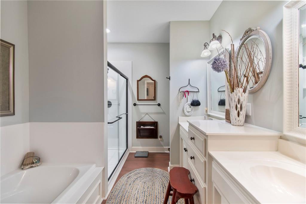 Discover this stunning villa nestled in the coveted Shoal Creek Valley - The Village, where luxury meets convenience just steps from the country club and local amenities. This meticulously maintained property welcomes you with an impressive great room featuring dramatic soaring ceilings, a warm fireplace, and elegant hardwood flooring that flows throughout the main level. The heart of the home showcases a chef-inspired eat-in kitchen equipped with premium stainless steel appliances, expertly crafted custom cabinetry, and a convenient breakfast bar perfect for casual dining. Retreat to the luxurious master suite, complete with a spacious walk-in closet and spa-like ensuite bathroom featuring dual vanities, an upgraded shower, and a relaxing jetted tub. The finished basement expands your living space with an expansive recreation room, a third bedroom, and a full bathroom, while the upper-level loft provides the perfect sanctuary for a home office or quiet sitting area. Located within the prestigious Liberty School District, this exceptional property combines elegant living with practical convenience and hassle-free maintenance. Monthly HOA fee of $293 covers lawn care, snow removal, exterior building maintenance, exterior painting and roof repair.