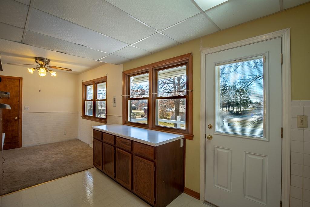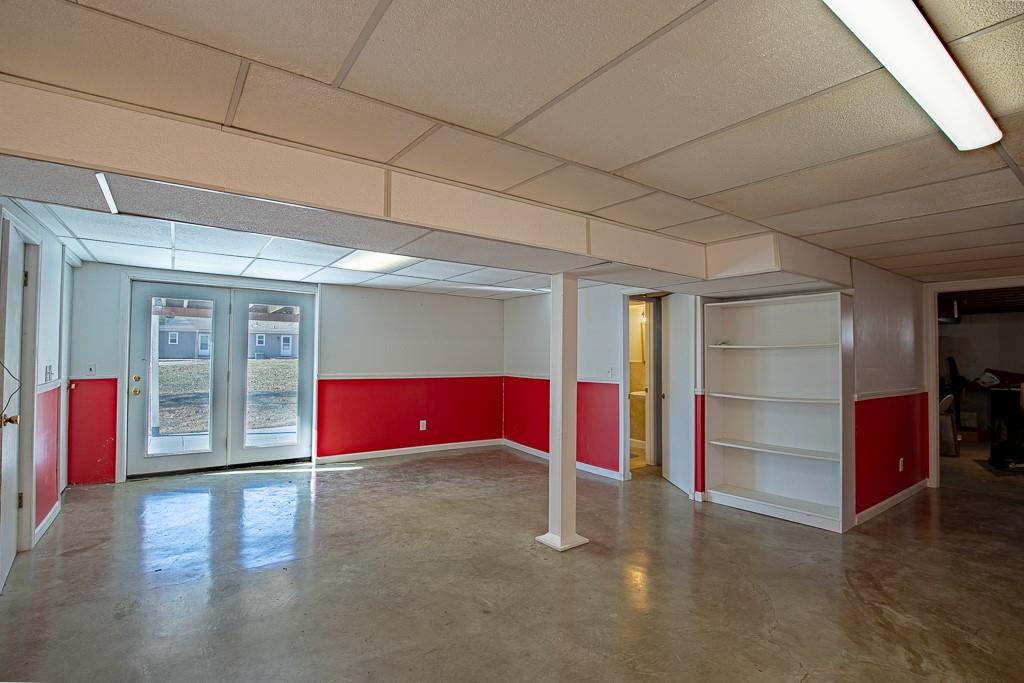 Well built Ranch with vinyl siding on approx 1/3 acre. We believe there are wood floors under the carpet. Nice size bedrooms, Deck off Kitchen which has extra cabinets with lots of work space, pantry with drawers, Large rec area with walkout door to back yard and patio, Gas hook up- for bar b que on lower level. large storage area under the garage, work shop area