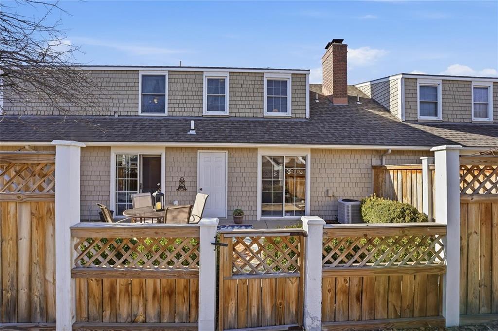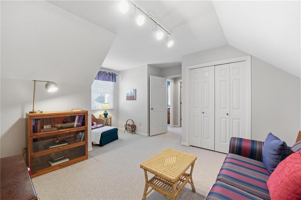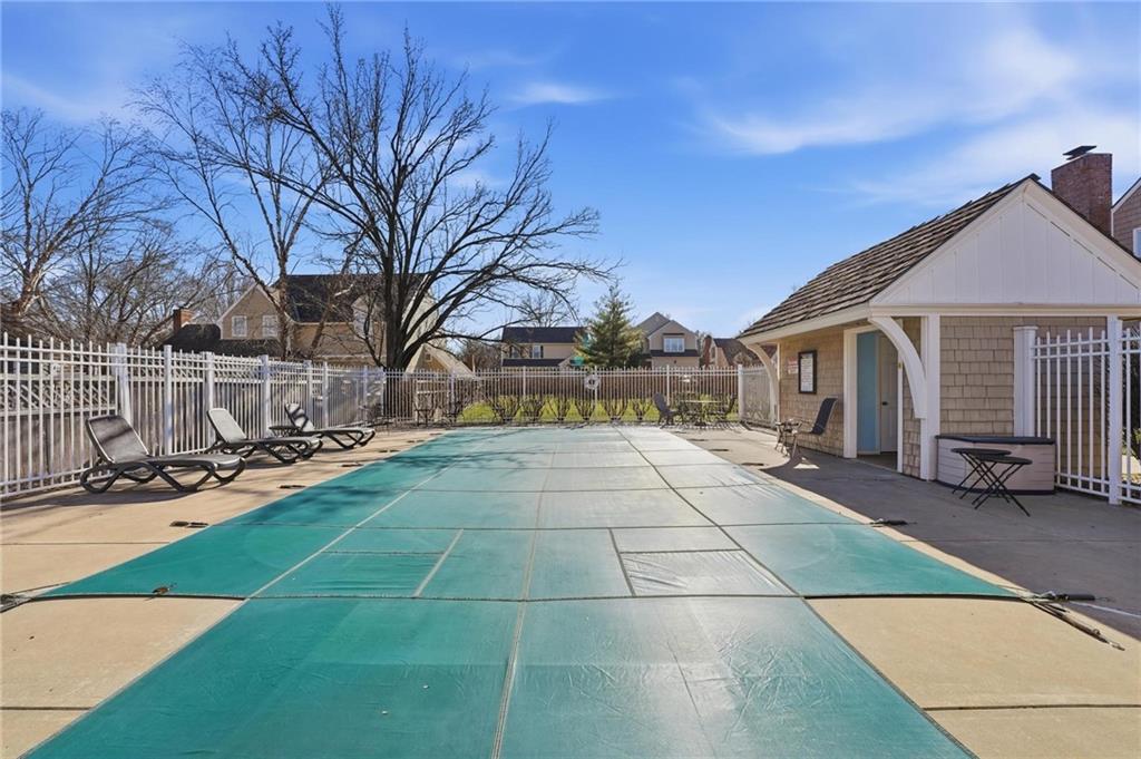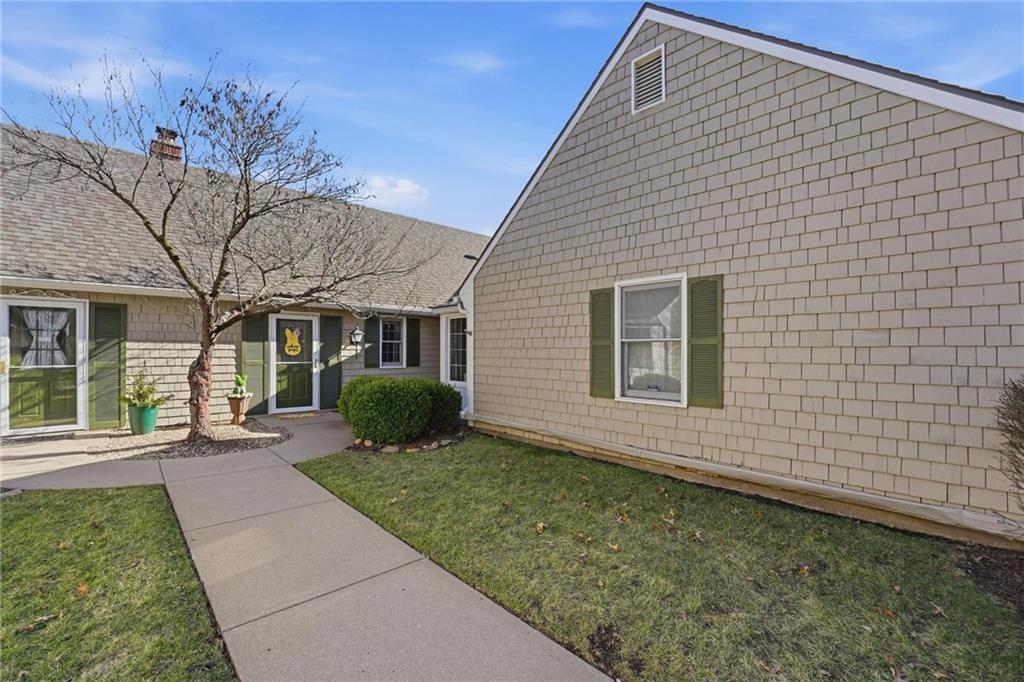 The Cottages in Lawrence is a small community of homes and townhomes designed and built by Gene Fritzel. This charming community boasts mature trees and a private pool. The HOA provides lawn care and snow removal in addition to the well-maintained pool. This town home has been immaculately cared for, and the love of ownership shows throughout. The spacious family room contains a gorgeous brick woodburning fireplace, wood beams, and a sliding door to the large, beautiful patio surrounded by a privacy fence. The warm, inviting kitchen boasts gorgeous cabinets, kitchen island, a bay window (perfect for a breakfast nook), and an ample dining area with a vaulted ceiling. Laundry is located on the main level between the kitchen and primary bedroom. The sizeable, main level primary bedroom features a walk in closet w/shelving and a sliding door to the private patio. The primary bath has an onyx countertop and new faucet. There is a half bath on the main level for guests. The second level has two ample bedrooms separated by a charming full bath. Take a right out of the patio door and follow the sidewalk to the pool! This is a beautiful home in a gorgeous community!