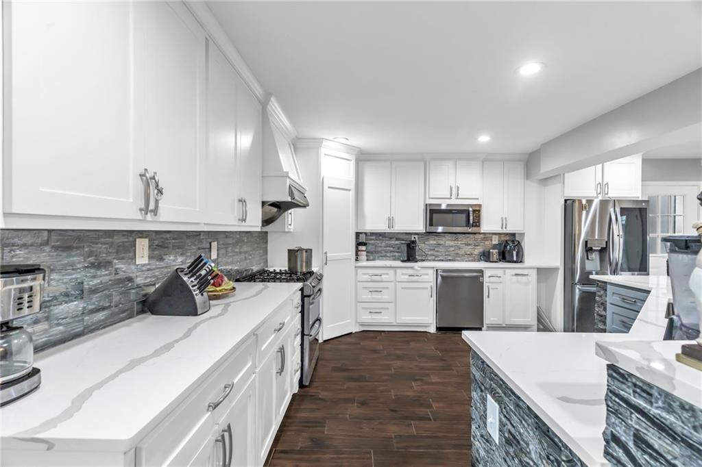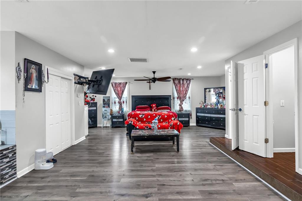 This spacious 5 bedroom, 2.5 bathroom home in Kansas City, KS offers over 3,200 square feet of versatile living space and a layout designed for comfort and flexibility. A long driveway leads to the detached 2-car garage, providing ample parking and convenience. The main level features an open concept living, dining, and kitchen area that feels bright and welcoming. The beautifully updated kitchen is the heart of the home, complete with a large island offering plenty of seating, abundant cabinet space, and a generous pantry for extra storage. The dining area is large enough to accommodate a full-size table, making it perfect for everyday meals or hosting friends and family. A bedroom on the main floor provides great flexibility and could easily serve as a guest room or an office. Upstairs, you'll find an expansive private primary suite that takes up the entire level, creating a true retreat. This space includes a large bedroom along with a bonus den or sitting area that could be used as a home office, lounge space, or another living space. The finished basement adds even more functionality with a full second kitchen, making it ideal for entertaining, extended family living, or additional recreation space. With its generous square footage, open layout, and thoughtful updates, this home offers a unique opportunity for comfortable living with plenty of room to spread out.