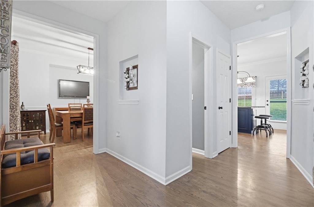 Updated 2-sty home on cul-de-sac lot in highly desirable Blue Valley School District! The remodeled kitchen showcases painted cabinetry, new island with granite and beverage fridge plus gas range. Hardwood floors run throughout main floor. Great room boasts fireplace and floor to ceiling windows for great natural light. Fresh paint throughout the main floor in 2024 makes this home move in ready. The finished lower level (2024) offers luxury vinyl flooring, stylish wet bar with ice maker and beverage fridge. Additional full bath in lower level. Upstairs features three spacious secondary bedrooms and a private primary suite with double sink, tub and HUGE walk in closet. Furnace replaced in Dec 2024. Enjoy fenced backyard with paver patio, fire pit, and gas line ready for grilling. Home backs to greenspace/utility easement to enhance privacy. Driveway expanded to create additional parking space. This home is a MUST SEE!