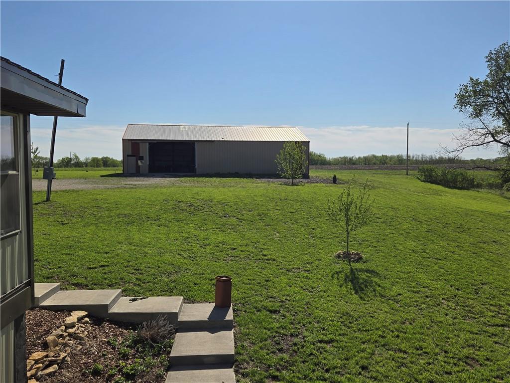 Imagine that perfect country home. Do you see yourself sitting high above your own pond, watching ducks lazily circle before landing? Picture gazing at the tree line as deer emerge in the early evening, or neighbors passing by in a horse and buggy rather than a pickup truck. Have you dreamt of a manicured yard, a new fruit orchard, or a 2,800 sq. ft. outbuilding with utilities? Is your ideal home perched on a high spot with views for miles in every direction? If so, this is your dream come true! This beautiful 15.7-acre property only minutes from Whiteman AFB features rolling terrain, a stunning stocked pond, and a stream winding through the land. Enjoy open spaces, breathtaking views, lots of wildlife and timber with trails to explore. The low-maintenance, metal-sided 1,686 sq. ft. ranch home offers three bedrooms, two and a half baths, and a finished walk-out basement. Recently remodeled and repainted, the kitchen boasts butcher block counters, an island, upgraded fixtures, and a deep country sink. The open floor plan in the main living area creates a welcoming space, while the finished basement includes a second kitchen—ideal for a mother-in-law suite. Step out onto concrete patios or a deck off the main living area, overlooking the pond—providing everything you need for the contented country life you’ve always imagined. There is plenty of room in the 3024 sf outbuilding with electricty and a water hydrant for both work and toys. A newly planted Orchard pollinated by your own bee hives completes the picture. Here, you can watch both sunrise and sunset from the same spot. If you value seclusion, privacy, beauty, and serenity, this property checks every box. Don’t miss the chance to make it yours! NEW PRICE, PLUS $10K SELLER CREDIT TO USE FOR LOWER PRICE, REMODELING, OR RATE BUY DOWN!!!