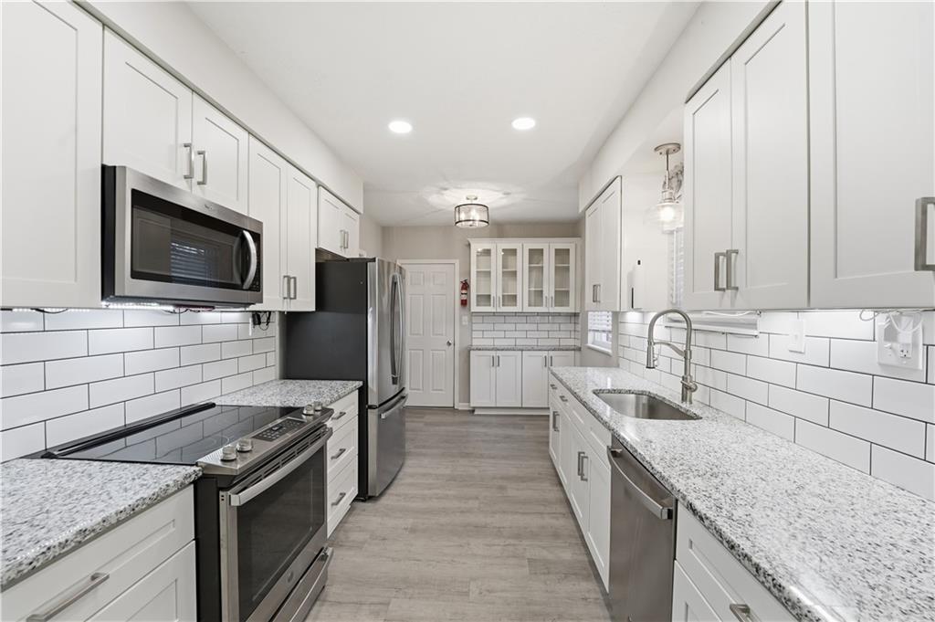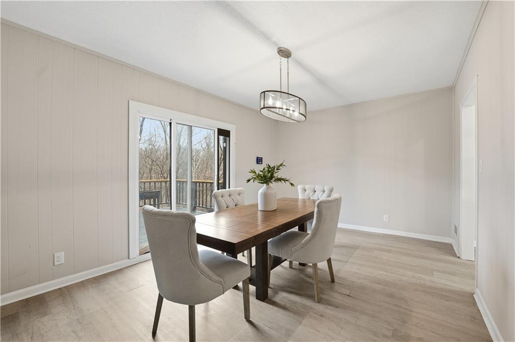 True Ranch with gorgeous updates in Gladstone!! This 3 bed, 2.5 bath home with NEW ROOF, NEW AIR CONDITIONER AND NEW WATER HEATER backs to trees for privacy. Step inside to an updated kitchen with granite countertops, subway tile backsplash, wood floors, and upgraded SS appliances. Convenient dining room or additional family room right off the kitchen has cozy fireplace and overlooks deck and trees beyond. Main level also features large great room, primary suite with upgraded tile bath and 2 additional bedrooms with upgraded adjacent bath. You'll love the full, finished walk-out basement with tile fireplace, family room, half bath, and additional space for extra bedroom or hobby room. Newer windows, electrical panel, and original hardwood, LVT and tile flooring throughout. Relax on your back deck with stairs down to large, fenced backyard that backs to trees, park, and trail! Laundry hookups both on main level and in the basement. Enjoy convenience to Downtown KC, KCI airport, restaurants, Hobby Hill Park & nearby trails!
