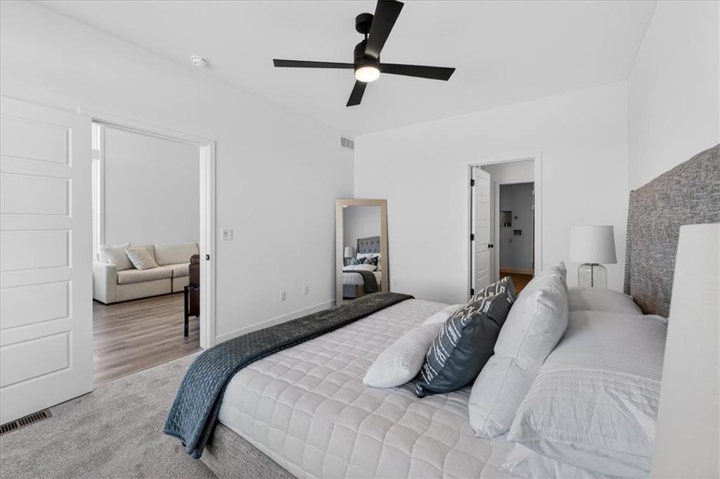 Discover refined, low-maintenance living at The Cliffs of Watercrest, where modern design and everyday convenience come together beautifully. This exclusive 1.5-story townhome blends contemporary style with functional comfort while offering a truly elevated lifestyle. Inside, soaring 20-foot ceilings and an open-concept layout create a bright, airy atmosphere filled with natural light. The spacious living area flows effortlessly into a functional luxury kitchen with premium finishes—perfect for hosting gatherings or enjoying a quiet evening at home. The main-level primary suite serves as a private retreat, featuring a spa-like bath with dual vanities and a generous walk-in closet and ensuite laundry. Upstairs, a versatile loft space leads to your own private rooftop terrace—an ideal setting for morning coffee, sunset views, or entertaining guests. Two additional large secondary suites each with their own walk-in closets ensures comfort and privacy for family or visitors. An unfinished walkout basement provides abundant storage and endless opportunities to customize the space to fit your needs. Ideally situated just minutes from premier shopping, dining, and major highways, The Cliffs of Watercrest offers the perfect balance of accessibility and upscale living. With low-maintenance services included, you can truly embrace a lock-and-leave lifestyle. ***Residents of the Cliffs also receive access to the amenities of WaterCrest Landing including the Pool, future Pickleball Courts and Play Area*** The Cliffs townhomes are also a perfect opportunity for investors looking to build their portfolio and take advantage of an exciting opportunity in a rapidly BOOMING area of Johnson County. Schedule your showing today!