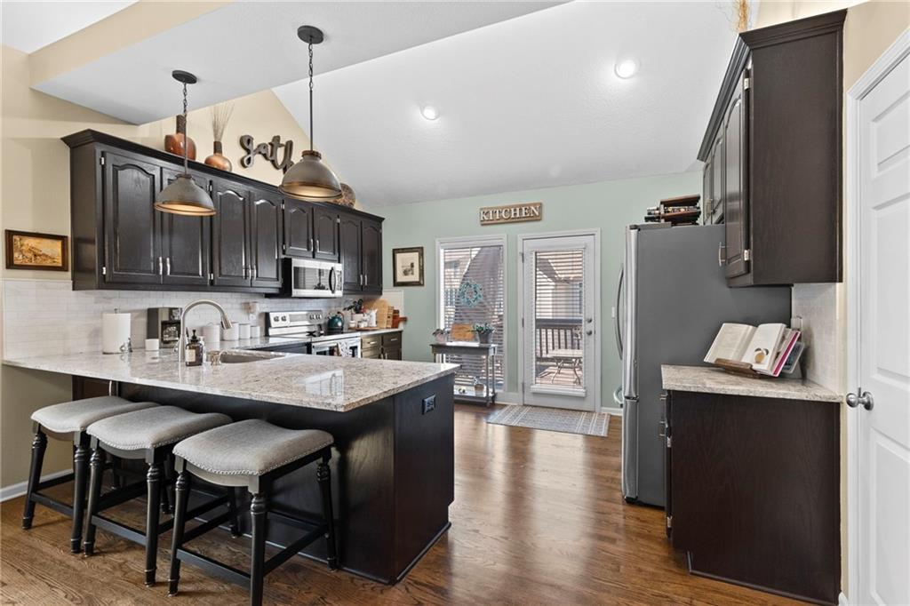 Welcome to this beautiful 4-bedroom, 3.5-bathroom home! As you enter, you'll be greeted by an updated tile entry that seamlessly flows into the spacious living areas. The entire home features newer fixtures and updated carpet, providing a fresh and modern feel. The kitchen is a highlight, showcasing a new backsplash and appliances that are all less than four years old. The master suite offers a private retreat with a newly tiled bathroom and shower and two walk in closets. The hall bath has also been updated with new tile. Additional features include a non-conforming bedroom in the basement, a walk-out basement perfect for entertaining, and wood floors that have been refinished with a scratch-resistant poly for durability. The HVAC system was replaced in Spring 2025. Close walking distance to community pool and play are. Nearby highway for easy access to anywhere in the metro.