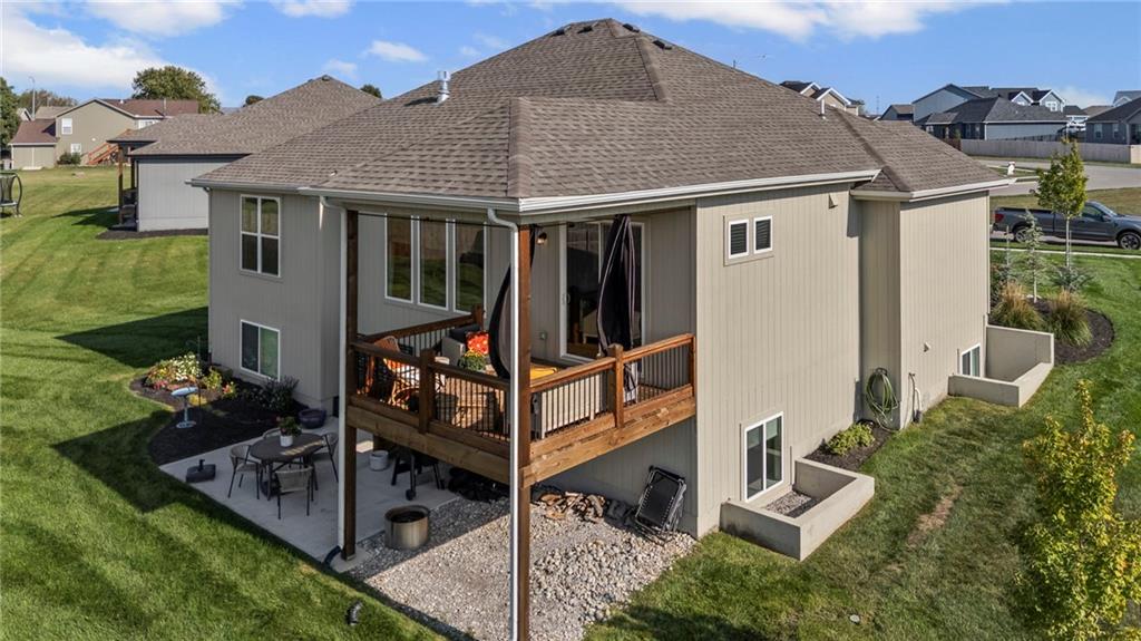 Better than new! Lovely four-bedroom reverse one and a half story by Pfannes Homes with tons of upgrades on a quiet cul-de-sac. Quartz counters, stainless steel appliances, upgraded lighting and hardware throughout, wood floors on main level. Large rec room area on the daylight lower level +2 bedrooms and a third-full bathroom and loads of storage space! Award-winning Basehor-Linwood school district! *big ticket items that stay with the home, refrigerator, washer & dryer and full house water softener and purifying system*
