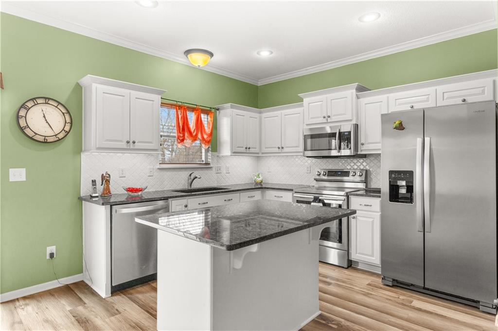 Beautiful property in move in condition. Main bathroom has accessible bathroom shower and large closet. Kitchen has stainless steel appliances and kitchen island. Granite countertops. Open floorplan in kitchen, dining room and living room. Laundry room in hall on main level. Ranch. Large deck and backyard. 2 car garage. Unfinished basement. Newer roof, sprinkler system, radon system, and alarm system. HOA maintains lawn and snow removal.