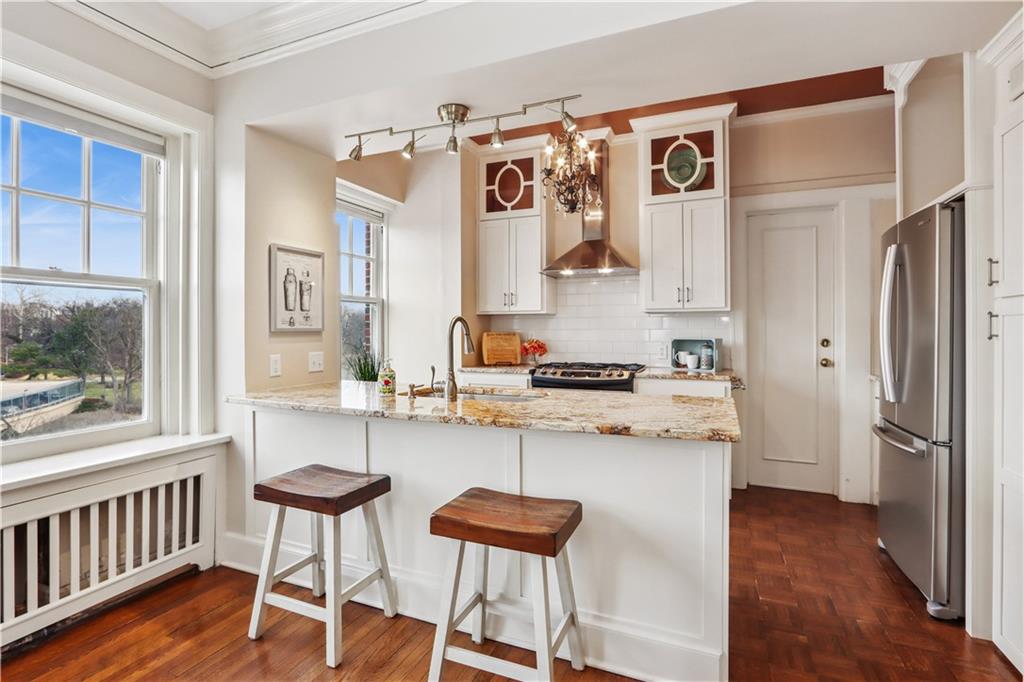 Fall in love with this beautifully updated 2-bedroom, 1-bath corner unit in the iconic Sophian Plaza. Flooded with natural light, this unit features rich hardwood floors, crown molding, and oversized windows with views in multiple directions. The updated kitchen is both stylish and functional, offering granite countertops, stainless appliances, a gas range, pantry, and spice cabinetry. Kitchen layout is open to the main living space, making it ideal for hosting or simply enjoying everyday life. The spacious primary bedroom offers generous closet space, and thoughtful touches like in-unit laundry and custom window treatments for convenience. Sophian residents enjoy a newly upgraded patio, private storage, secure exterior parking, and dues that include gas and water. Set in one of Kansas City’s most architecturally celebrated buildings, this location places you moments from the Country Club Plaza, Nelson-Atkins Museum of Art, parks, shopping, dining, and entertainment. If owning a piece of iconic architecture is on your bingo card for 2026, this one is worth it!
