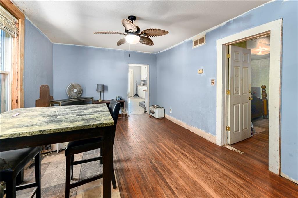This 1.5-story home features 4 bedrooms and 2 baths and is priced to sell. Located just one block from the square, it sits in the heart of Paola. The main level includes the laundry room, the primary bedroom and full bathroom. Upstairs you'll find three secondary bedrooms and an additional full bathroom. Enjoy plenty of off-street parking thanks to the pass-through driveway. The stove hookup is electric. The extra-large fenced backyard includes a shed and a clubhouse. Attractive brick hardscaping accents the patio and front sidewalks. The roof is approximately 10 years old, the HVAC system is about 12 years old, and the water heater is roughly 4 years old. This home has good bones and is ready for some updates and repairs.