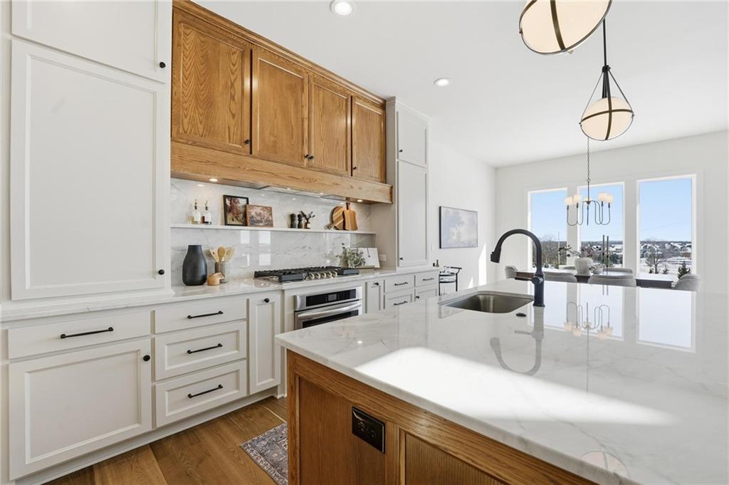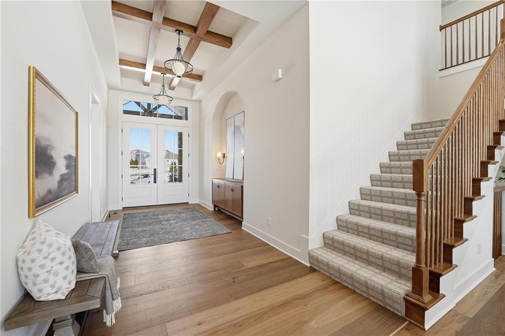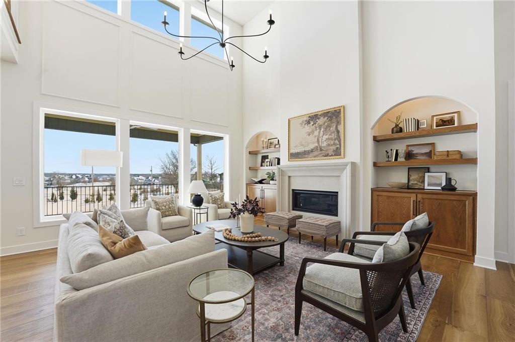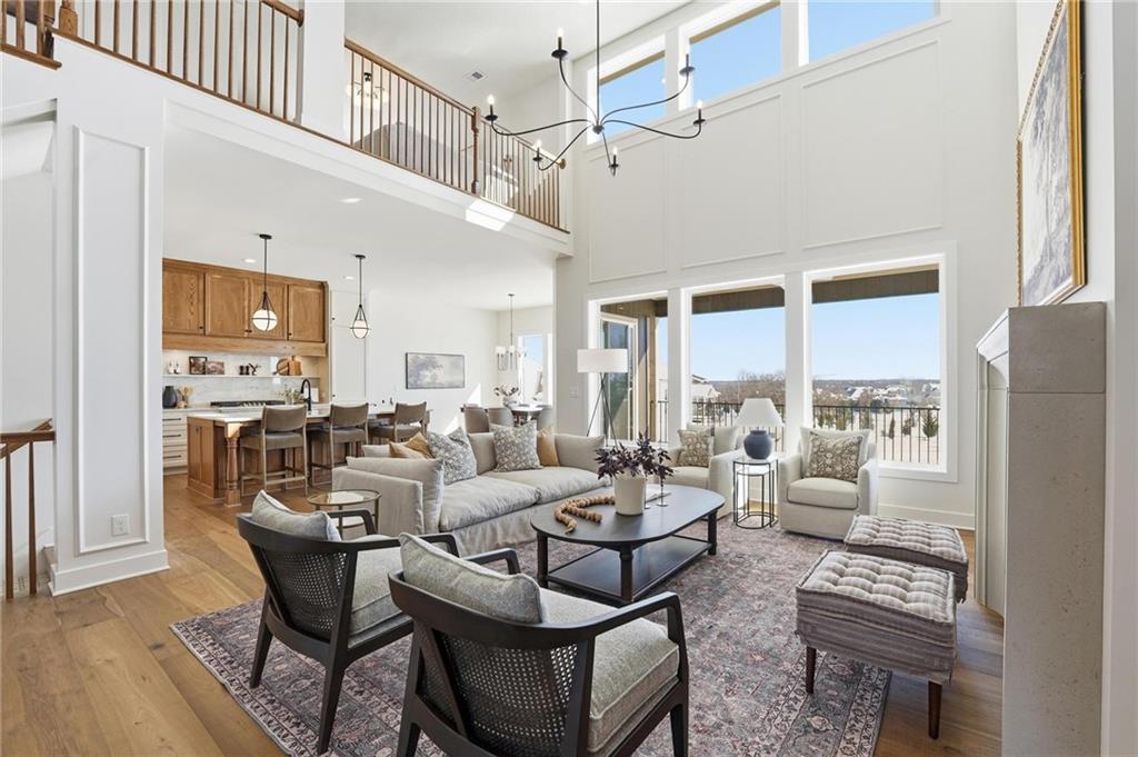 The new Aspen floor plan by Coventry Builders. THIS IS A MODEL AND IS NOT AVAILABLE FOR SALE. This 4 bedroom + Loft, 4.5 bath, 1.5 Story home features a large front porch. The Great Room has a soaring two story ceiling and the open living area is complete with a beautiful fireplace, built-ins, and tons of natural light. The kitchen has lots of cabinet and countertop space and a huge island. The large pantry/prep kitchen is adjacent. Beams in the Entry Foyer ceiling add to the WOW. The Dining room opens to the large covered composite deck. The main level features a 2nd bedroom with it's own bath and walk-in closet. The spacious main level Primary Bedroom opens to the luxurious Mbath with a large walk-in shower and free-standing tub. The large Master closet features plenty of storage possibilities. Connected to the master closet is the laundry room with a quartz countertop. The second level features a large loft that overlooks the Great Room. There are two additional spacious bedrooms on this level. This home is on a walkout lot, has a 3 car garage and a large covered deck. Don't miss seeing this home! Community amenities are open and include: clubhouse w/ fitness room, dog spa, gathering room and catering kitchen; 4 pools including a zero entry outdoor pool, outdoor kiddie pool, Indoor lap pool and indoor machine pool; sport court for basketball and pickleball, and playground. The new Blue Valley elementary school, Aspen Grove, is located in the center of the community.