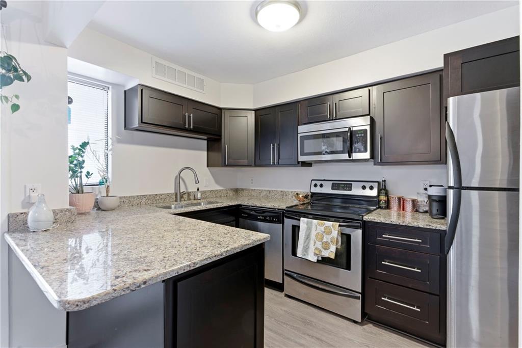 Welcome to this beautifully updated 2-bedroom, 2-bath condominium located in the heart of Kansas City. Perfectly situated near parks, museums, restaurants, and the Plaza, this home combines urban convenience with neighborhood charm. This move-in-ready, first-floor unit is complete with two private balconies, two dedicated parking spaces, and a private storage unit. The open layout features a modern kitchen with granite countertops, sleek cabinetry, and stainless-steel appliances—all of which stay with the unit. There is an in-unit washer and dryer that stay with the condo. Community amenities include a fitness center, clubhouse, and all-inclusive HOA services that cover water, trash, and building maintenance. The HOA has made several major updates recently, including masonry work, plumbing upgrades, and balcony reinforcements—with the special assessment fully paid at closing for peace of mind.