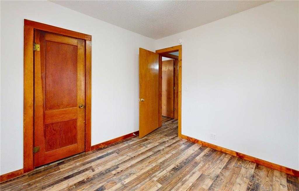 Welcome to this beautifully refreshed single-story home, offering the perfect combination of modern updates and functional living. The interior boasts a "like-new" feel with high-quality wood-look laminate flooring that flows through the spacious living room and all bedrooms. Neutral white paint and classic wood trim provide a bright, inviting atmosphere throughout. The home features a well-appointed full bathroom with a tub/shower combination and a vanity. You will also find a dedicated laundry and utility room equipped with ample shelving for extra storage needs. The exterior is just as impressive, featuring low-maintenance white siding with striking black shutters. The backyard is a true highlight, offering a large, decorative stamped-concrete patio that is ideal for entertaining, all contained within a fully fenced-in yard. With a gravel driveway for off-street parking and mature trees for shade, this home is a must-see!