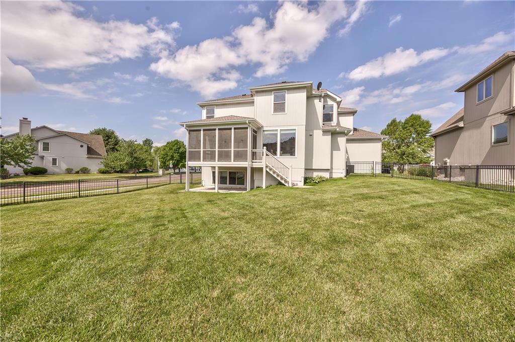 4-Bedroom, 3.5-Bath 2-Story in Blue Valley School District with new roof! This beautifully maintained home is in like-new condition, featuring a brand-new roof and a freshly painted premium exterior. Inside, you'll find hardwood floors on the main level, luxury vinyl upstairs, and bedroom-level laundry for added convenience. The only carpeted areas are the staircase and basement, both of which were professionally cleaned just days ago. The spacious kitchen includes a large walk-in pantry, and all appliances stay. Enjoy quiet mornings on the screened-in porch or relax in the primary suite with a jetted tub. The home is flawlessly clean and truly move-in ready, offering exceptional comfort and functionality. Ideally located within walking distance to the subdivision pool, large fenced yard, this home blends style, convenience, and community amenities. Buyer and Buyer’s Agent to verify taxes, school district, and square footage.