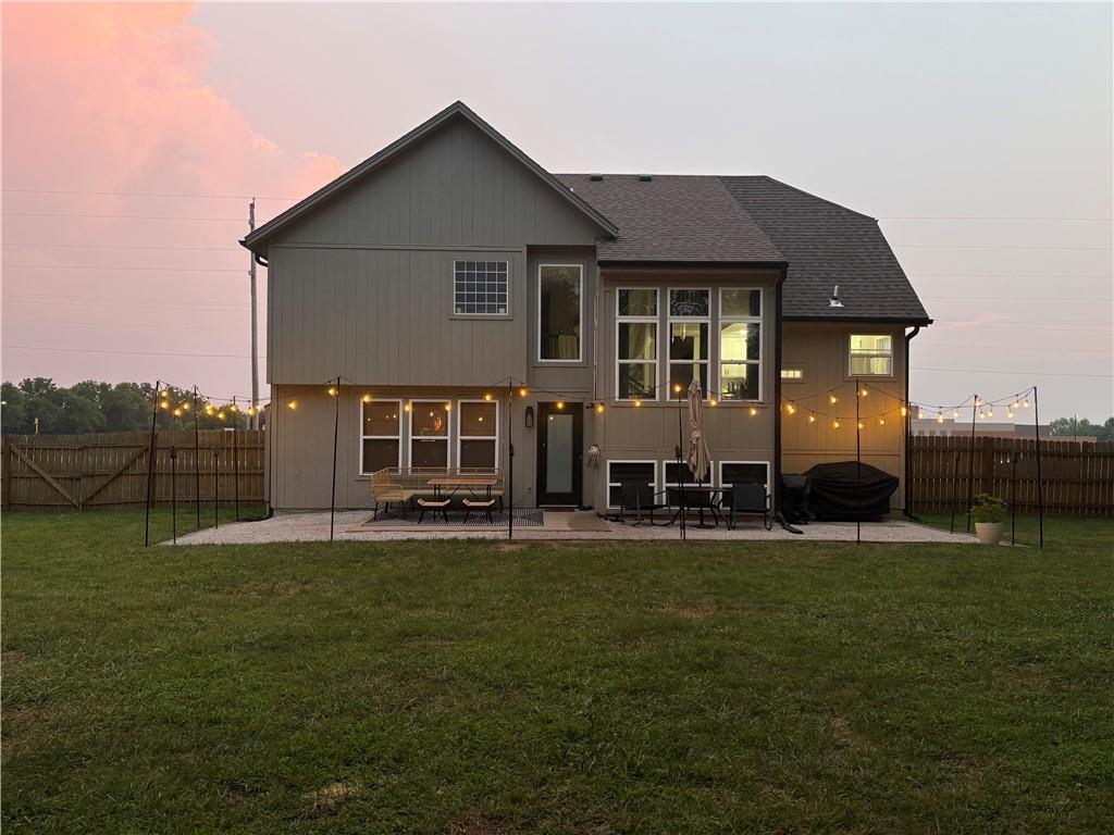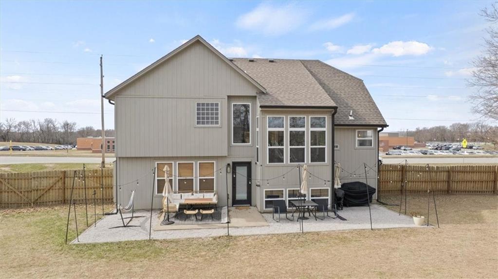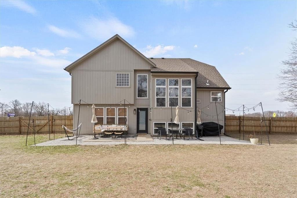 Come see this beautifully maintained home in a highly sought-after neighborhood, ideally located across from one of Blue Springs' award-winning schools and near Stone Canyon Golf! From the moment you step inside, you’ll notice the elegant design and fixtures paired with tons of natural light that make the entire main level feel open & inviting. The hardwood floors throughout the living spaces add warmth and character, while the layout flows effortlessly for both everyday living and entertaining. The clean and bright kitchen features abundant cabinetry for a lot of storage, generous prep space, and a seamless connection to the dining and living areas—perfect for hosting gatherings of any size! The luxurious primary suite is a true retreat with plush carpeted floors and a spacious feel that makes it easy to unwind. Additional bedrooms offer comfort and flexibility, giving you the space you need to spread out and enjoy. Step outside and you’ll truly fall in love! The spacious backyard is designed for making memories—imagine evenings around the fire pit, relaxing in the lounge area with friends, or enjoying the charm of the treehouse tucked among the trees. There’s room to host, unwind, and enjoy every season outdoors! With its unbeatable location, elegant style, and inviting indoor-outdoor living, this home checks all the boxes. Don’t miss your chance—schedule your showing today!