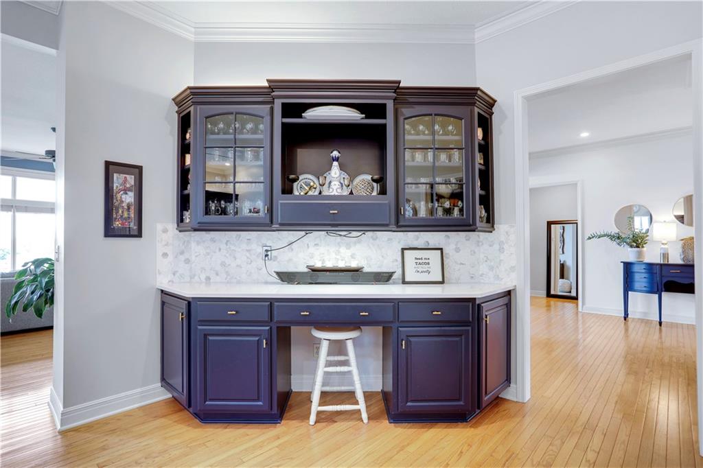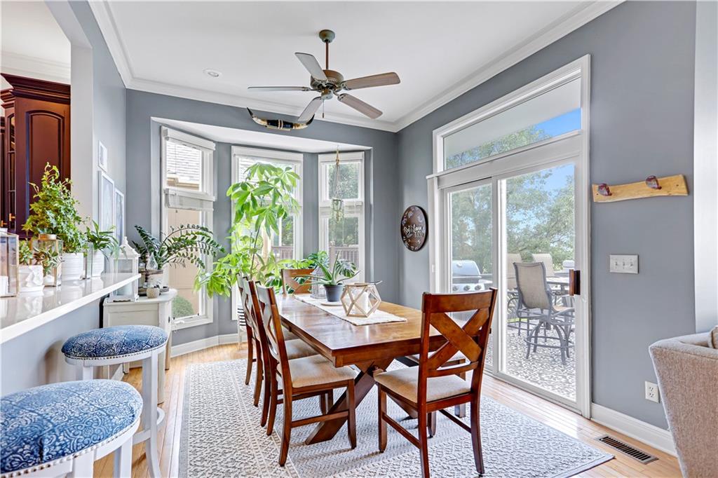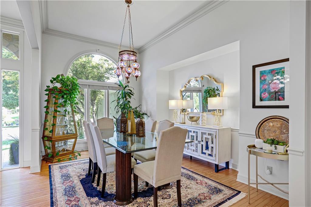 Views, views, views!!! Enjoy expansive, stunning views of the sunsets overlooking the 18th green on Falcon Ridge Golf Course from the wall of windows from every west facing room on the main floor: primary bedroom, formal living room, hearth room and the kitchen/breakfast room as well as the deck or patio. Updates galore! Kitchen was remodeled in Nov '22 with Cambria/quartz countertops, new backsplash, navy cabinets, new gas cooktop and new dishwasher. Most of the interior was painted in '22 and the exterior was painted in '23. Two bedrooms and a bath in the lower level were added in '21. Fabulous floorpan with primary bedroom and laundry on the main floor and tons of space for entertaining. The lower level has three additional bedrooms and a bonus room along with two full bathrooms, a large sliding door walks out to a patio with a wisteria covered pergola for plenty of shade and more views of the golf course! Lots of space for the pool table (that stays) as well as plenty of room to host the big game with a wet bar area as well. Electric fence by Pet Defence around the front and back yard. Maintenance provided community so say goodbye to your lawnmower and hello to carefree living! Beautiful flowers bloom for color in every season: tulips, hydrangea, peonies, roses, mums. Join the pool and clubhouse for an additional $295 estimated for the year, optional. So many wonderful restaurants, and shopping nearby with Lenexa City Center just 2.6 miles away, and super easy highway access. About 25 minutes to Arrowhead, Power & Light or Allen Fieldhouse. Owner/Agent