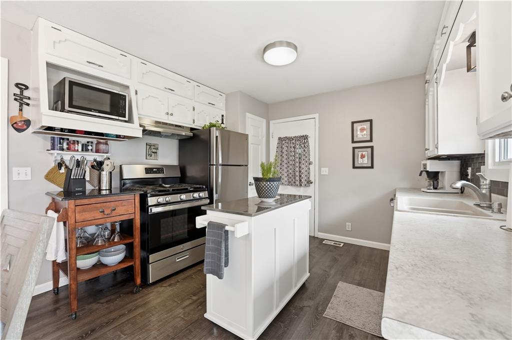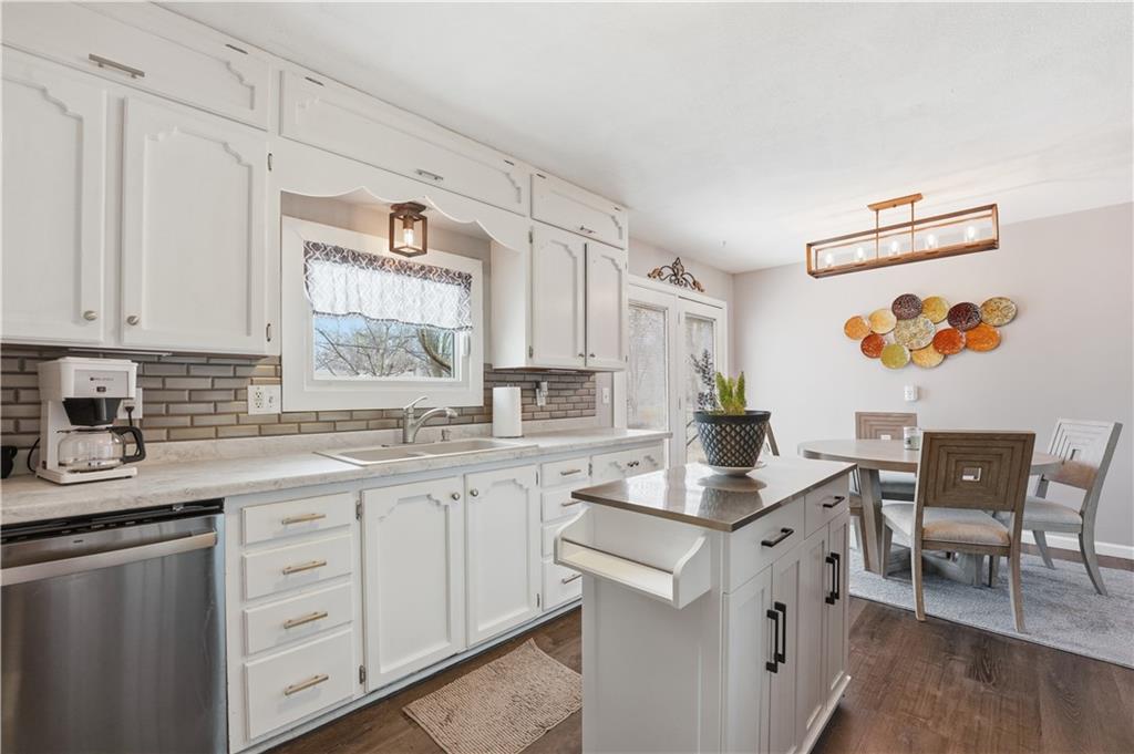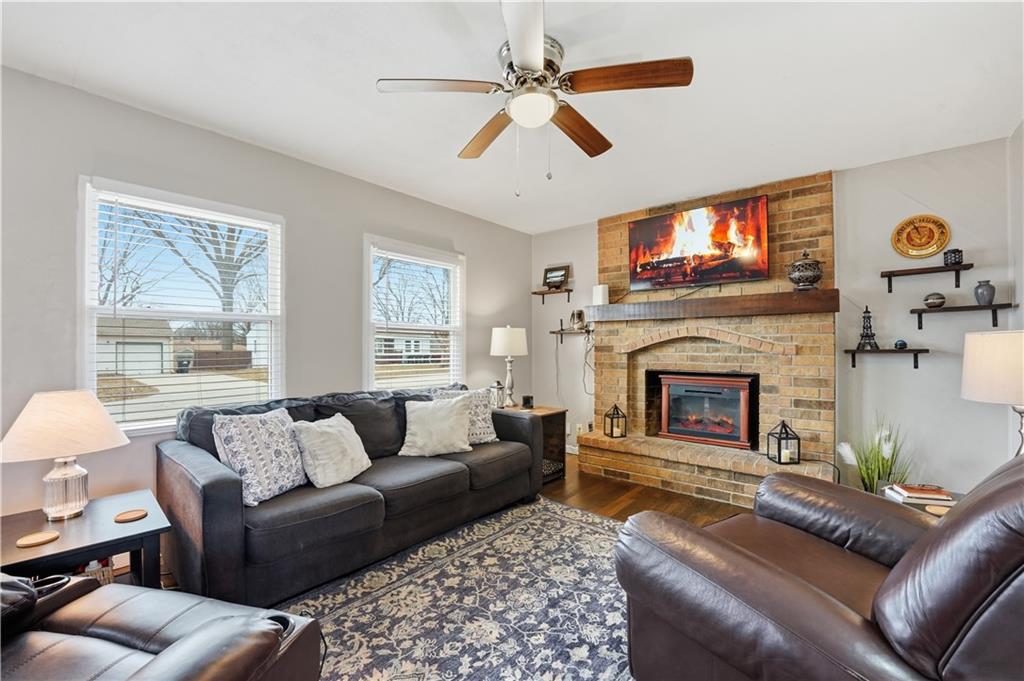 Welcome to this exceptional True Ranch home that radiates pride of ownership and boasts stunning updates throughout. From the moment you step inside, you'll be captivated by the inviting ambiance and meticulous attention to detail. As you enter, you are greeted by a warm and welcoming living room, featuring a charming brick fireplace that sets the tone for cozy gatherings. The refinished hardwood floors flow seamlessly throughout the main living areas, and Pergo in the kitchen, bathroom and laundry room creating a cohesive and elegant atmosphere. The kitchen is a true highlight, having been thoughtfully updated within the past four years. It boasts freshly painted cabinets, stylish new hardware, and new countertops. The addition of modern tile, a sleek granite sink, and updated appliances, including a new disposal, enhance both functionality and aesthetics. The bathroom continues the theme of modern elegance with its contemporary tile work, offering a refreshing and serene space for relaxation. The main bedroom is generously sized, easily accommodating a king-size bed along with additional furniture. This sanctuary provides ample space for rest and rejuvenation. The exterior of the home has not been overlooked. The driveway has been extended, and the sidewalks have been redone, ensuring both convenience and curb appeal. This home is not only visually appealing but also offers the peace of mind that comes with significant updates. In the past four years, the roof, HVAC system, and windows have all been replaced, showcasing the home's commitment to quality and longevity. With its stunning aesthetic, solid big-ticket updates, and move-in-ready condition, this True Ranch home is a dream purchase for anyone seeking a perfect blend of style, comfort, and functionality. New attic stairs for storage as well!