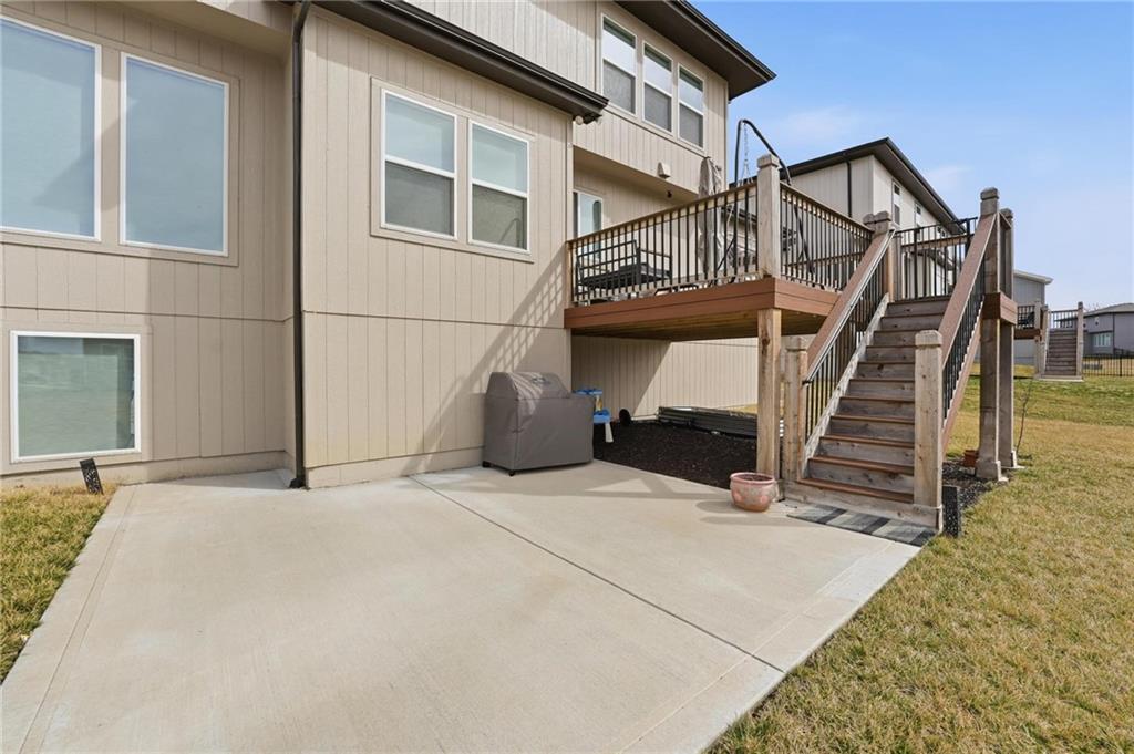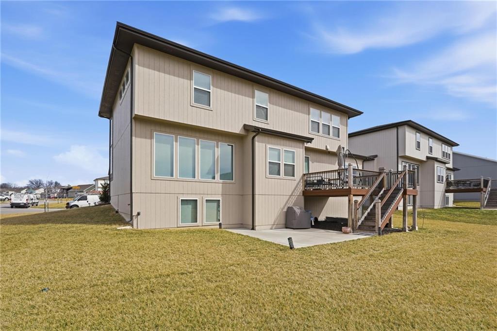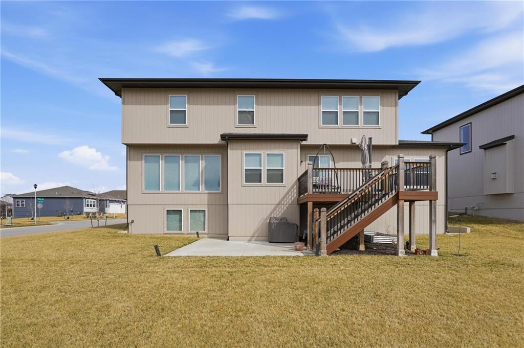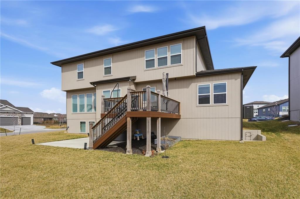 Built in 2024, this nearly new Charleston floor plan by Summit Homes showcases the sought-after Modern Prairie elevation and offers a perfect blend of style, function, and flexibility. Featuring 4 bedrooms and 4 full baths, this thoughtfully designed layout includes a main-floor bedroom and full bath — ideal for guests, multi-generational living, or a private office. Upstairs, one of the original bedrooms has been upgraded into a spacious loft, creating a versatile second living area perfect for a media room, study space, or playroom. The loft can easily be converted back into a 5th bedroom if desired. The open-concept main level provides comfortable everyday living and effortless entertaining, while the deck extends your living space outdoors. A daylight unfinished basement brings in natural light and offers outstanding potential for future expansion — whether you envision additional bedrooms, a recreation room, gym, or custom entertainment space. Located in desirable Overland Park, this amenity-rich community features a clubhouse, gas grilling area, playground, and pool with slide. Annual dues include trash and recycling services for added convenience. Why wait to build when you can own a nearly new home with upgrades already complete? Move in and enjoy modern construction without the construction timeline.