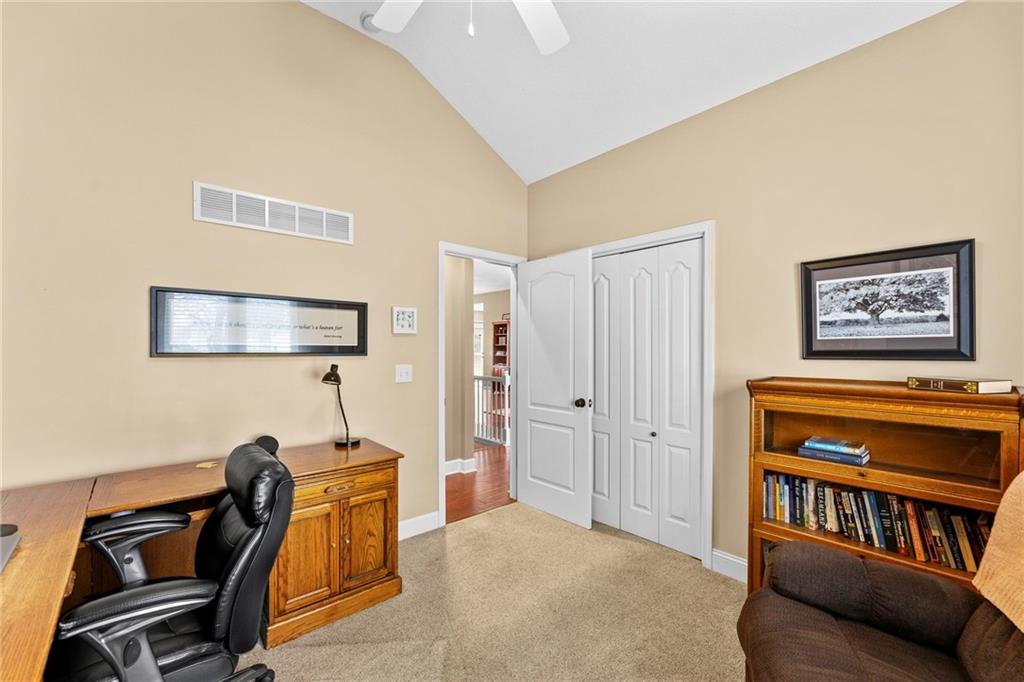 Welcome home to this well-maintained ranch in the desirable Villas of Northbrook subdivision! This 2-bedroom, 2-bathroom home offers almost 1550 square feet of MAIN level living space, including a spacious 1,492 sq ft of unfinished lower level space -- perfect for a REC room, home office, additional living area or bedroom and bathroom. The open layout features a comfortable main floor with soaring ceilings, engineered hardwood floors, main floor laundry and lots of natural light. Spacious kitchen with granite countertops, painted cabinets, stainless steel appliances and eat in kitchen make this home perfect for entertaining. Primary bedroom leads into the spacious primary bathroom with a double sink, oversized walk-in closet and shower with tile surround. Step outside to your private patio, ideal for relaxing or entertaining guests. The attached 2-car garage provides convenience and ample storage. Located in the Liberty School District with a new water heater in 2024 and a new furnace and A/C in 2019! Don't miss this opportunity to enjoy single-story living with room to grow in one of Kansas City's established communities with lawn and snow removal included in the HOA fee. Fridge, Washer and Dryer all STAY!