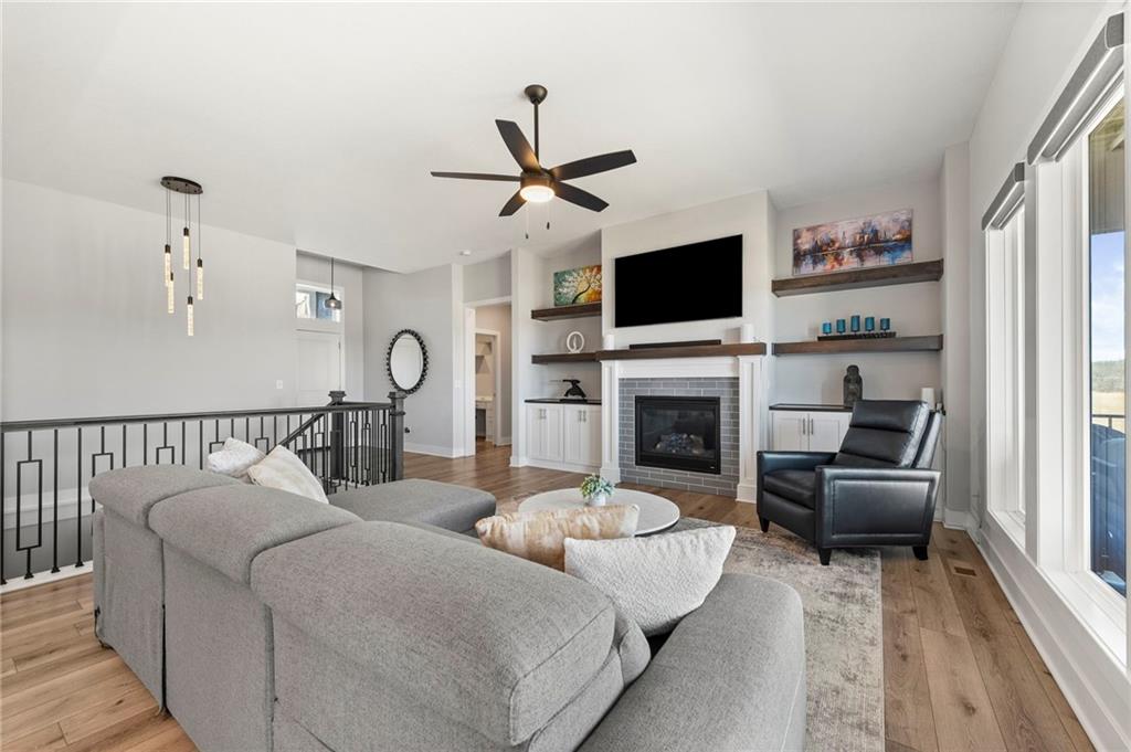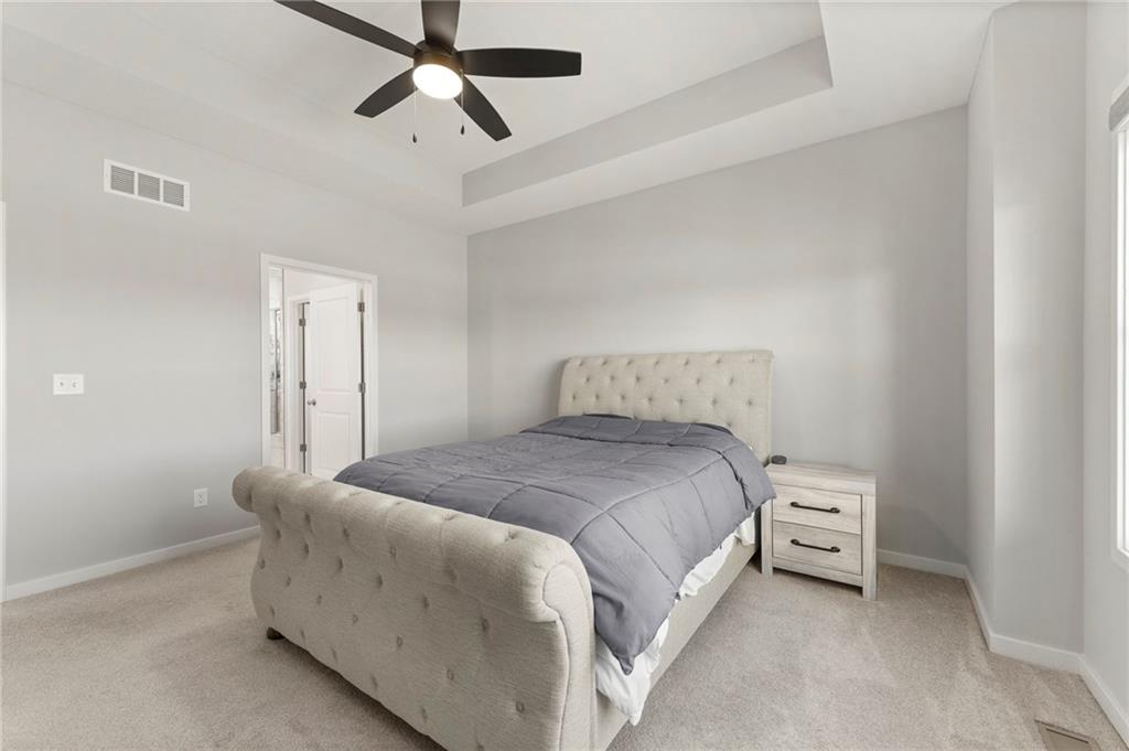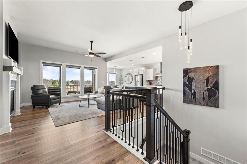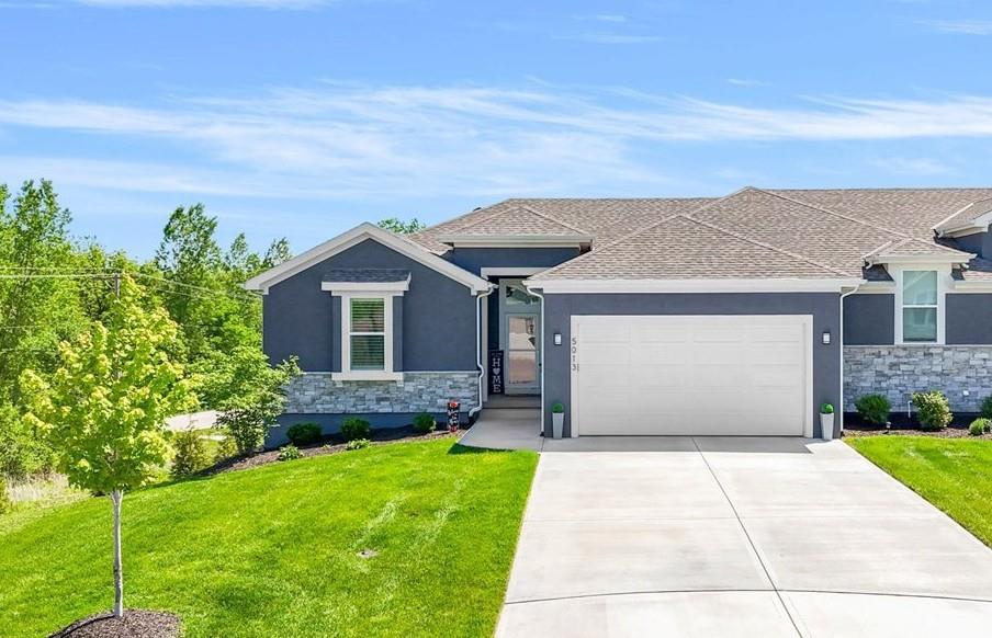 Stunning View of the Golf Course! From Tee Box to the Green par 3 View! Walkout lot on a cul-de-sac! This reverse 1.5 story home has everything you need on the main level. Enter into the great room and instantly see the spectacular view of Hole 17! Kitchen with walk-in pantry and quartz counters. Drop Zone/Boot Bench and 1/2 Bath just off the garage and kitchen. Covered deck is perfect for enjoying a cup of coffee while taking in the sunrise and the scenery! Primary suite includes bedroom with LARGE walk-in closet, bathroom with walk-in shower, laundry right off the closet, and office area. Finished lower level Family Room walks out to great fenced yard! Family Room perfect for an entertainment center. Two bedrooms and a full bath as well. Plenty of storage in the unfinished area. Fresh interior paint 2 years. Stained covered Deck. Maintenance includes comprehensive lawn care, snow removal, exterior painting, and replacement of roof and gutters as needed. Also includes access to neighborhood pool, play area, pickleball & tennis courts. Falcon Lakes golf course is a public course with a bar and grill, "The Nest". Highly rated Basehor-Linwood School District! Conveniently located just off K-7 for easy access to all parts of the metro area. Just 10 minutes to the Legends Shopping and Entertainment District and 30 minutes to the airport.