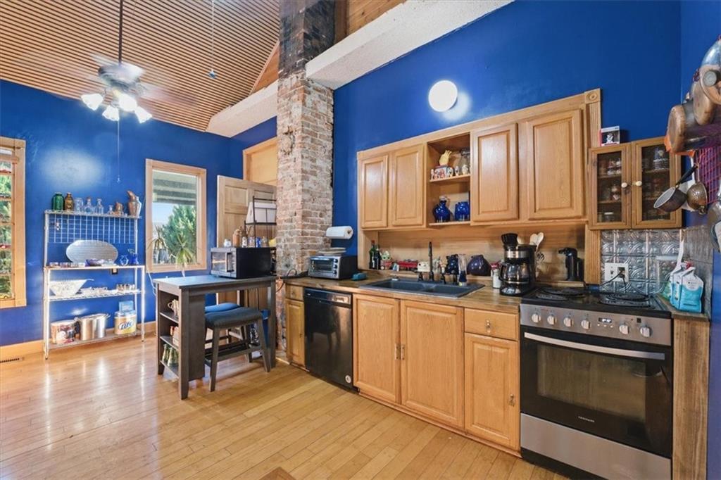The price is right for this double lot. Kansas City will host the Federation Internationale de Football Association (The World Cup). What a time to own property to welcome our neighbors. This property sits on a double lot. The city cleared along the fence line, allowing an unobstructed view of the skyline. The possibilities for this property/land are unlimited—such a quaint neighborhood. Sellers are avid gardeners, so surprises of all sorts will be blossoming. Updated kitchen, bath, and some fresh paint. The full stone basement holds possibilities, too. Don't miss out!