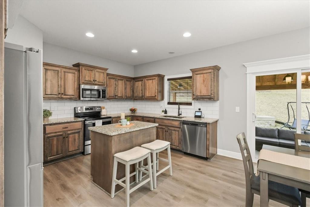 Welcome to your ultimate dream home, where modern farmhouse elegance meets high-tech luxury! This stunning, nearly-new two-story residence in the highly sought-after Woodbury community is packed with the "must-have" features that today’s buyers crave. From the moment you step inside, the open-concept main floor captivates with its designer shiplap accent walls and a gourmet kitchen that serves as the heart of the home. You’ll fall in love with the custom staggered cabinetry, sleek granite countertops, and a functional center island perfect for meal prep or casual dining. The layout is thoughtfully designed for convenience, featuring a bedroom-level laundry room and four spacious upstairs bedrooms, including a primary suite with a large walk-in closet that feels like a private sanctuary. The finished basement is a true showstopper, offering a lifestyle experience you won't find anywhere else. It features a professional-grade home gym illuminated by incredible hexagonal LED "honeycomb" lighting, a dedicated creative studio or gaming office, and a spacious media room complete with a built-in Murphy bed for effortless guest hosting. Step outside to your private outdoor oasis, where a large covered patio provides the perfect setting for relaxation. Whether you are soaking in the hot tub, watching the big game on the outdoor TV, or enjoying the peaceful view of your expansive backyard, this home is built for year-round entertaining. Complete with a spacious 3-car garage and located within the top-rated Grain Valley School District, this property offers the perfect blend of style, tech, and comfort. This is more than just a house; it’s the lifestyle upgrade you’ve been waiting for!