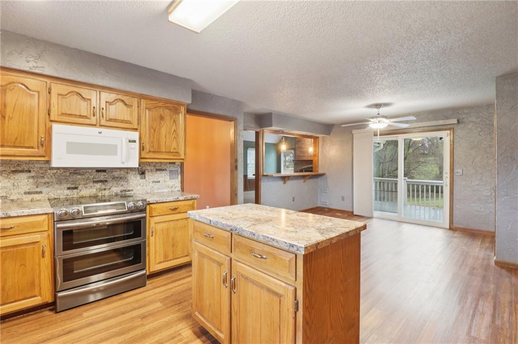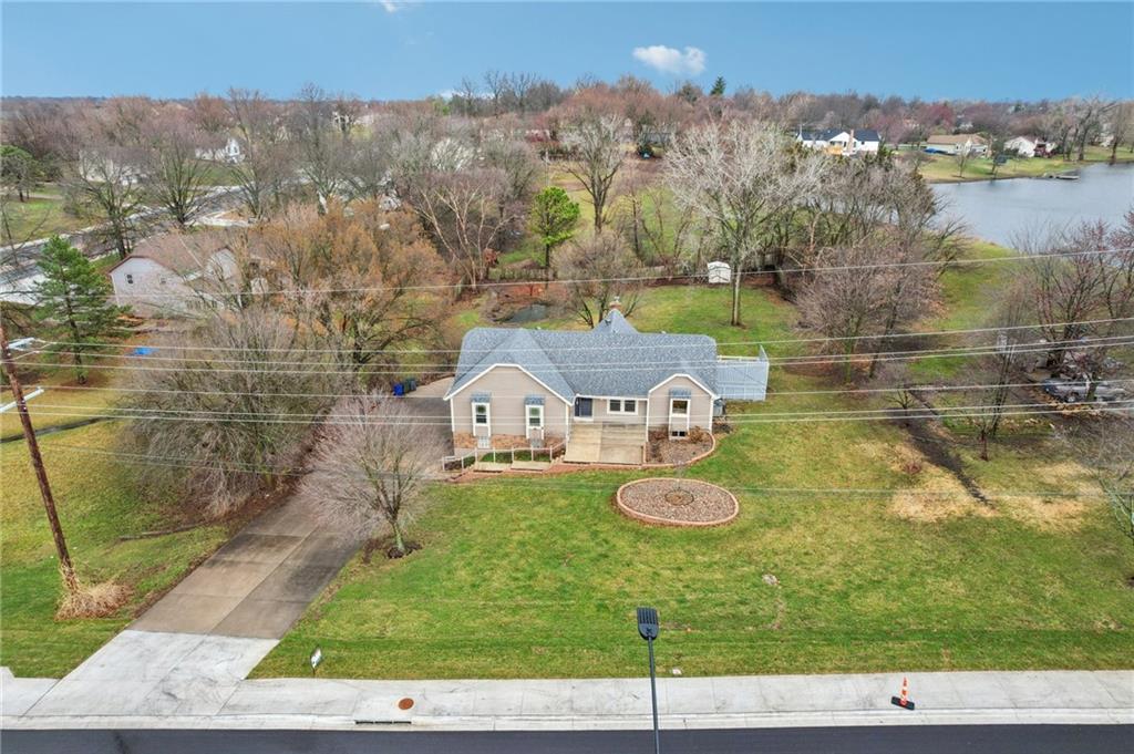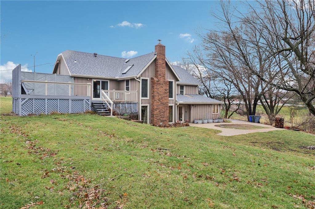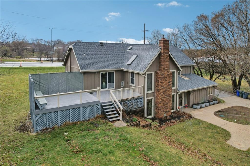 Impressive 4 bedroom raised RANCH with a walk-out finished lower level and a 3 car side entry garage. Three bedrooms and 2 bathrooms are on the main level; the 4th bedroom and full bath are downstairs. 3 car garage has side entry. The eat-in Kitchen is spacious and is adjoined by the Great Room with a large pass-through window. Perfect for entertaining. From the Kitchen you can go out onto your brand new deck. Enjoy your private 1 acre treed yard complete with a small pond, sprinkler system with a new WiFi controller, invisible dog fence and many lovely flowers and blooming trees. The home offers so much versatility. You can also go out to your front porch and enjoy the new rock landscaping and new plantings coming up everywhere. The front beds are maintenance free with a drip irrigation system to water the plants. The lower level is a great living space as well with new paint, carpet and a small kitchen. Perfect for an apartment or family member space. There is also an office room downstairs with the back door close by. Perfect for a home office or business. Approximately 2907 sq ft of living space. The home has two security systems. There are Ring security cameras on all 4 outside exits which can be activated when attached to WiFi for monitoring from anywhere. You can also activate the traditional inside alarm system for both upstairs and down. The new WiFi connected thermostat allows you to adjust the house temperature remotely. The home is in the Olathe school system and has easy highway access and convenient shops, grocery stores and restaurants nearby. Bring your decorating ideas and make this treasure your own. The subdivision boasts a 7 acre lake where your dogs can swim & you can walk around. Woodland Estates is the small subdivision with 17 home