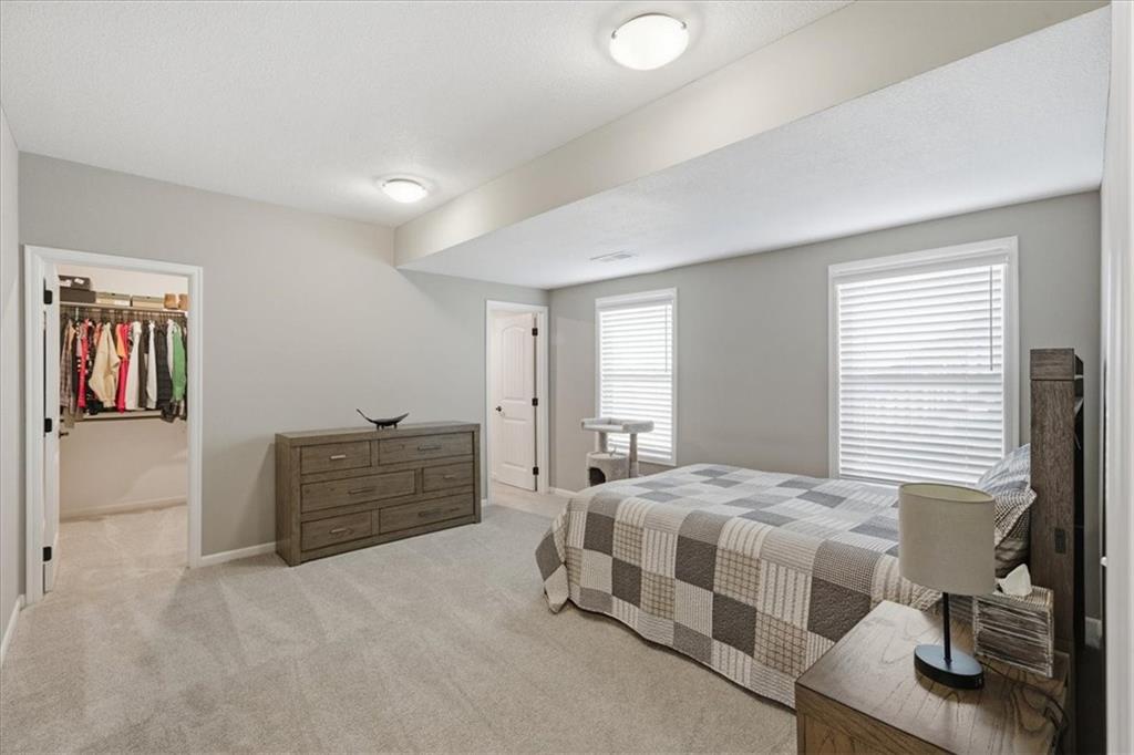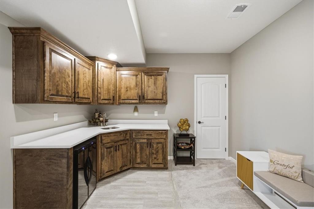 In the highly sought-after Waterford neighborhood, this rare reverse 1.5-story Wilshire II by Hoffmann Custom Homes offers 4 bedrooms, 3 full baths, and a 3-car garage. The open-concept main level features a bright, airy living space, a private primary suite, and a flexible second bedroom with a nearby full bath. The kitchen includes a spacious walk-in pantry, and just beyond, an extended deck steps down to a patio and fenced backyard—perfect for entertaining. The finished lower level features two more bedrooms, a full bath, a large rec room with an entertainment bar, and abundant storage, including a seasonal closet. An in-ground sprinkler system completes the home’s convenience and curb appeal.