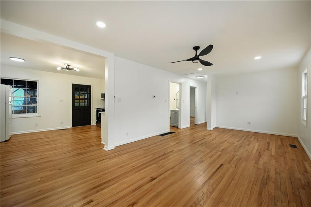 This beautifully updated ranch-style home offers an open-concept main living space and an impressive list of updates from head to toe. The main level features refinished hardwood floors, fresh interior paint, and updated light fixtures throughout, creating a bright and welcoming atmosphere. The layout includes two full bedrooms and two full bathrooms on the main level, making it both functional and comfortable. The primary suite features a generously sized closet and a fully updated bathroom with a tiled shower and bathtub, new LVP flooring, updated vanity, and modern hardware. The hall bathroom has also been completely updated with a beautifully tiled shower and stylish finishes. The kitchen has been thoughtfully refreshed with new granite countertops, a tiled backsplash, updated hardware, stainless steel appliances, and a new faucet—perfect for both everyday living and entertaining. The finished basement adds incredible additional living space, including a third bedroom and a fully updated bathroom featuring a tiled shower and updated finishes. There is also a fourth non-conforming bedroom, along with plenty of additional room for storage. Brand-new carpet has been installed throughout the basement. Outside, the property offers excellent parking and outdoor amenities, including a one-car attached garage and an additional carport. Enjoy relaxing on the covered rear porch, graciously sized corner lot, and take advantage of the fully enclosed shed, perfect for yard tools, gardening equipment, or additional storage. With its thoughtful updates, flexible living spaces, and fantastic features throughout, this home truly is a must-see.