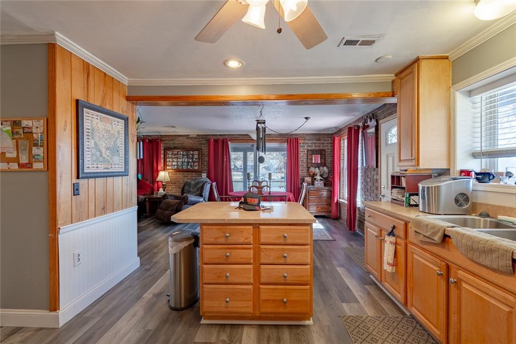 Nestled at the 8 MM in Buck Creek Cove, this lakefront retreat offers the best of both worlds—big protected cove and year-round water. If you’ve been waiting for that “this is the one” feeling, this might be it. This beautiful all brick home with detached 2 car garage has been thoughtfully updated with major improvements you’ll truly appreciate. The main level features brand-new LVP flooring and new windows that fill the space with natural light while boosting energy efficiency. Central heating and cooling have been added for year-round comfort, making lake living easy in every season. Both bathrooms have been completely remodeled with fresh, modern finishes. In the kitchen, you’ll find a new dishwasher & garbage disposal, ready for entertaining after long days on the water. The big-ticket items? Already handled. Updates include a new pressure tank on the well, new septic pump, aerator, and laterals, plus a new shallow well pump on the dock—giving you peace of mind so you can focus on enjoying the lake. Relax outside on the screened in patio or step down to the dock for all your summer fun. Just a short boat ride away from Shady Gators, Tap & Grill & Franky & Louies