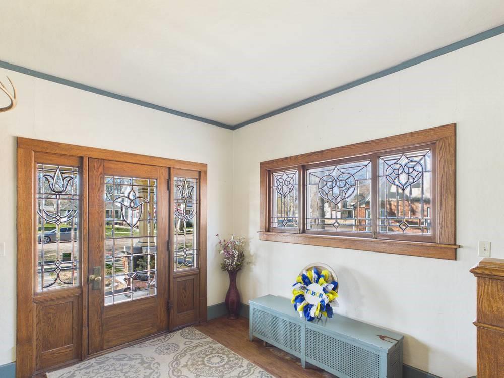Discover this charming two-story brick and stucco home that features a spacious, front-covered porch perfect for enjoying the outdoors. Inside, you'll find beautifully detailed hardwood floors and stylish trim, complemented by a striking beveled glass front door and accent windows that add character. The home boasts three inviting bedrooms, including a full bath and two half baths for convenience. The finished partial basement offers additional living space, equipped with multiple zoned mini splits for optimal climate control. With ample storage throughout, a full walk-up attic, and a detached garage featuring a storage area, this property is designed for functionality and comfort. Plus, a delightful detached backyard clubhouse makes it an ideal retreat for relaxation or play.