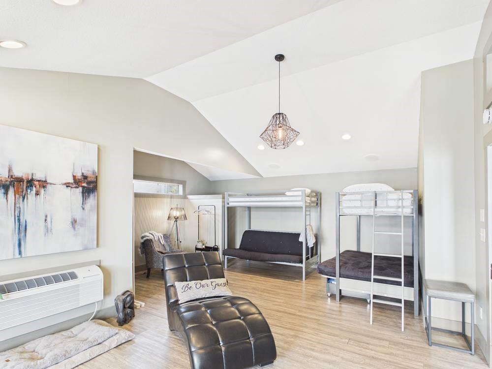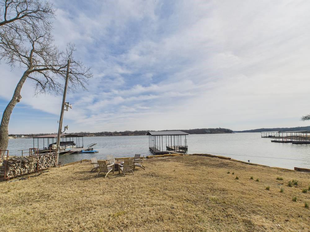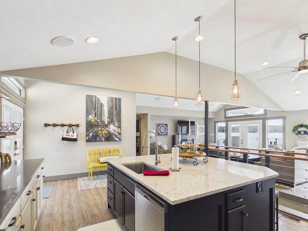 This stunning fully furnished home at Lake Fort Scott, boasts approximately 3,360 square feet of exquisite living space. Recently upgraded with a new roof, this residence features three spacious bedrooms and two full bathrooms, including additional plumbing prepped for a primary suite. The open floor plan on the main level showcases a vaulted ceiling, enhancing the airy feel of the living space, which is designed with modern aesthetics in mind. The large kitchen, equipped with a quartz kitchen island, features a professional-grade Viking gas range with pot filler and stainless steel hood. Cozy up by one of the two electric fireplaces or step out onto the covered deck from the main level, perfect for entertaining. The lower level includes a family room and a media room, as well as a workout area with included equipment. Additional amenities include a side entry garage with a utility cart, a large back patio, and a private dock with a 22-foot Sun Tracker pontoon and a lake-side outdoor fire pit. Conveniently located just an hour and 15 minutes from the metro KC area, this home offers a perfect blend of luxury and leisure. Fort Scott Lake has a yearly $150 lake frontage fee and monthly sewer fee due to the City of Fort Scott