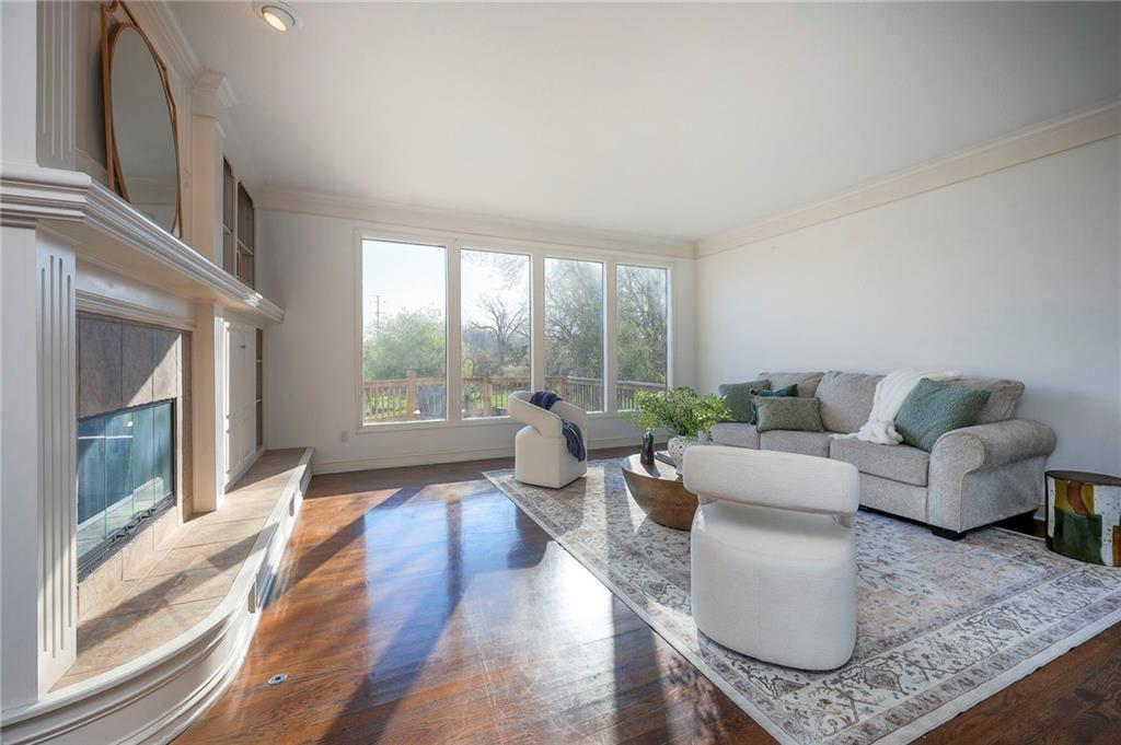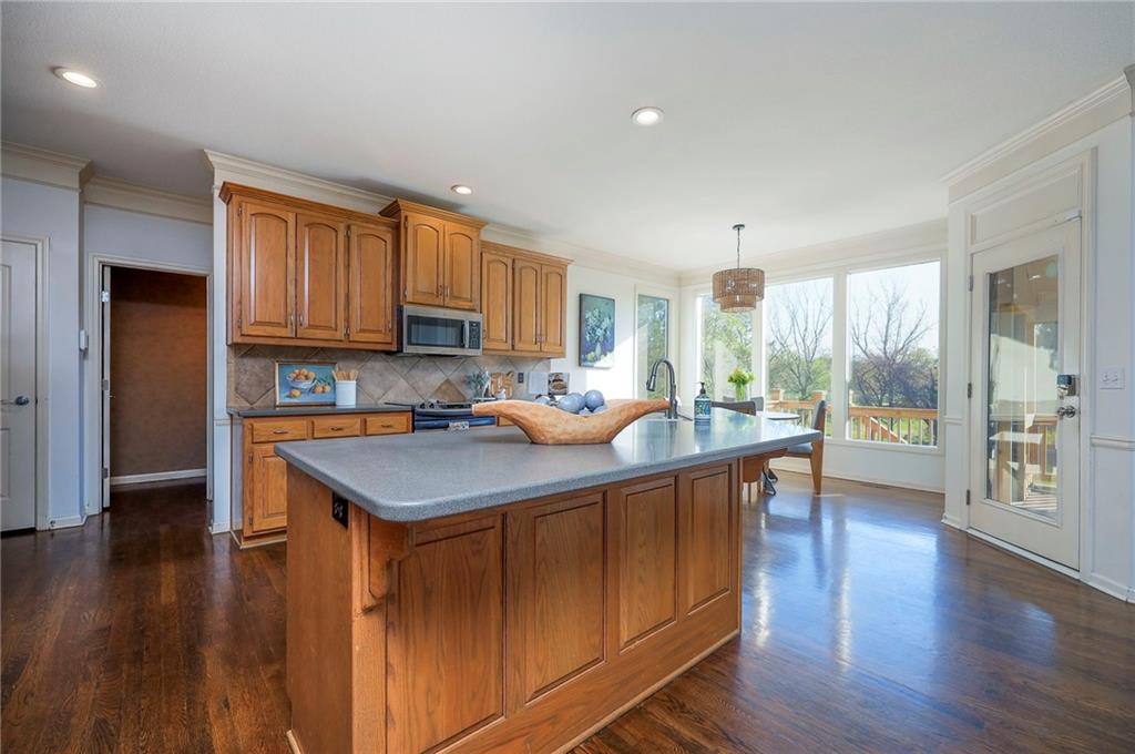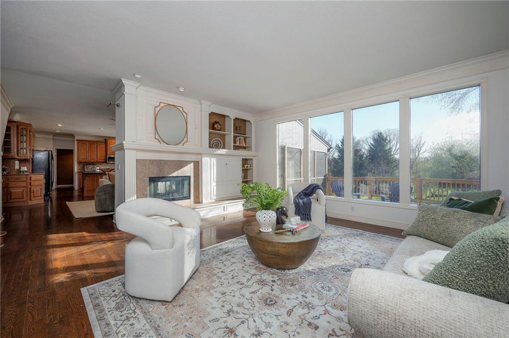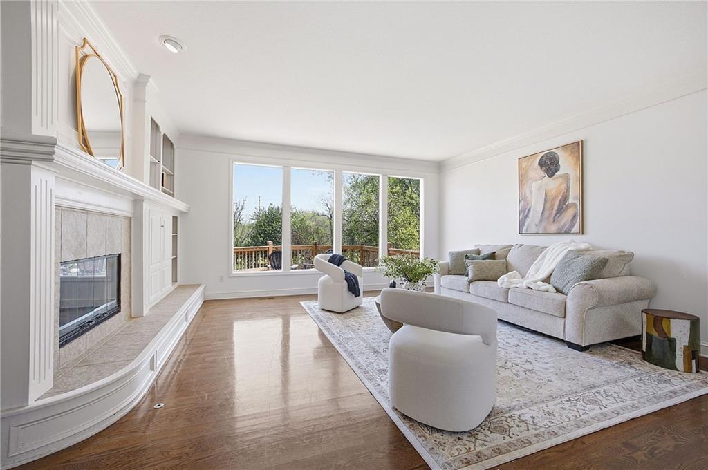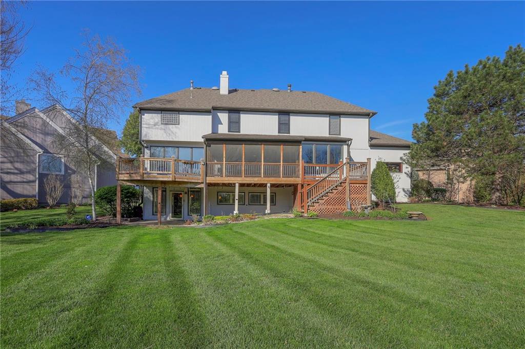 Beautiful in Brookhighland! This light filled & spacious two-story home offers 5 bedrooms and 4.1 baths. Thoughtfully designed with dedicated spaces for office, formal living and dining that flow seamlessly into an open floor plan hearth room. A half bath and one of two full-sized laundry rooms complete this level. Ideal for both entertaining and everyday living. With stunning views to green space, step outside into a beautifully built screened porch that opens on to the decks. Upstairs, the expansive primary suite provides a private retreat with a luxurious en suite bath, walk in closet, cupboard storage and a separate den area- complete with a second laundry. Additional generously sized bedrooms include one with its own en-suite and two that share a Jack and Jill bath—one enhanced by a versatile bonus space. The finished walk-out basement is perfect for entertaining or relaxing, complete with a 5th bedroom, full bath, movie screen, and bar. Step right out to the backyard that backs to expansive green space for added privacy and scenic views. Do not miss the oversized garage! With space for up to FIVE cars! Tandem space and custom built car-lift make this garage one of a kind! This custom built home is perfect for everyday life and filled with "extras", made for the good life and entertaining. NEW roof and gutters to be installed the week of May 4th and new garage doors coming soon (on order). Located in the award-winning Blue Valley School District, this home also offers quick access to Highway 69 and is just minutes from everything that makes Overland Park consistently recognized as one of the best places to live and work!