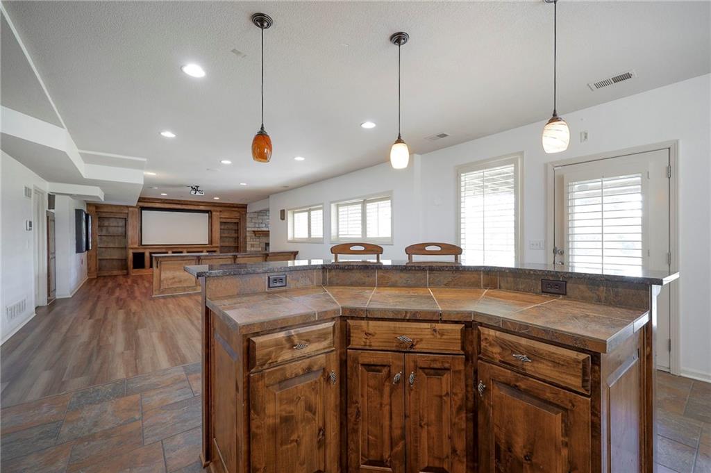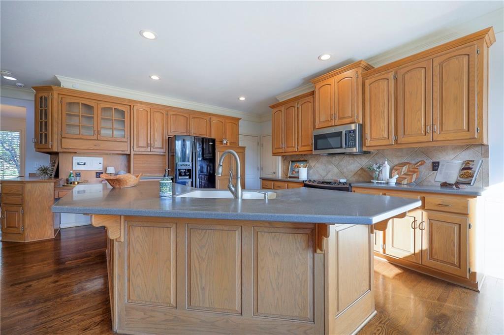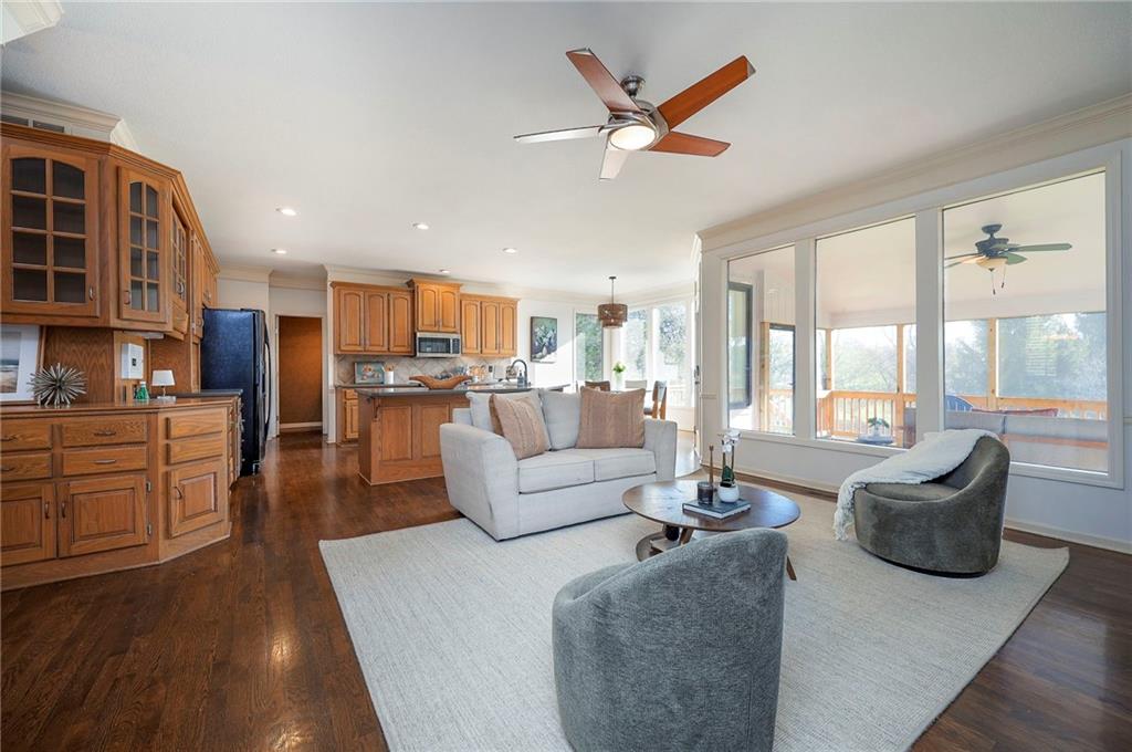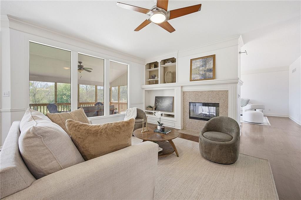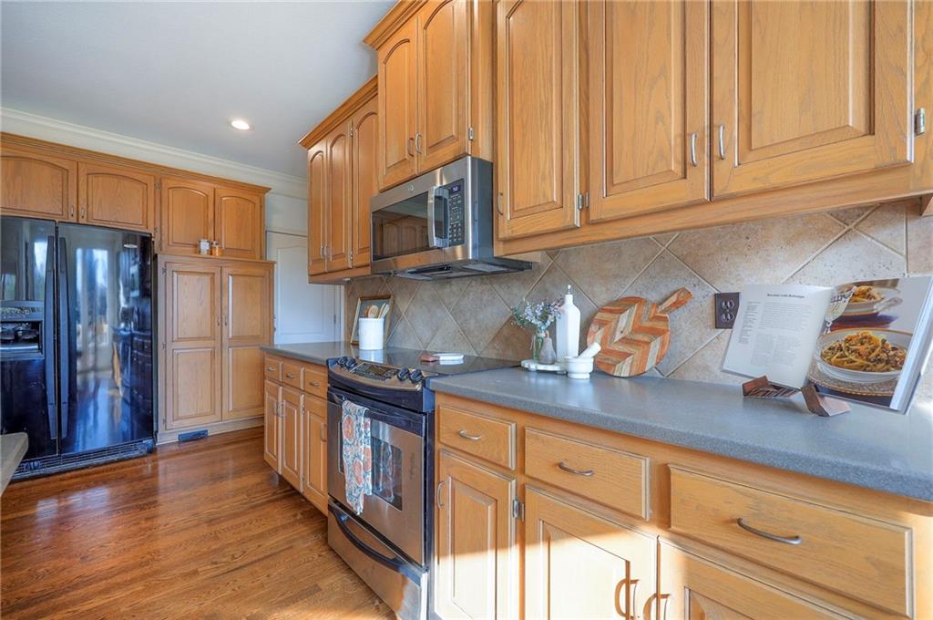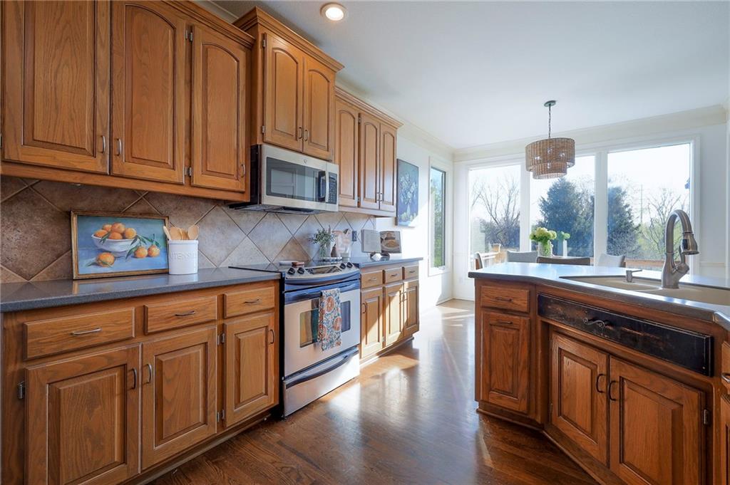 Beautiful in Brookhighland! This light filled & spacious two-story home offers 5 bedrooms and 4.1 baths. Thoughtfully designed with dedicated spaces for office, formal living and dining that flow seamlessly into an open floor plan hearth room. A half bath and one of two full-sized laundry rooms complete this level. Ideal for both entertaining and everyday living. With stunning views to green space, step outside into a beautifully built screened porch that opens on to the decks. Upstairs, the expansive primary suite provides a private retreat with a luxurious en suite bath, walk in closet, cupboard storage and a separate den area- complete with a second laundry. Additional generously sized bedrooms include one with its own en-suite and two that share a Jack and Jill bath—one enhanced by a versatile bonus space. The finished walk-out basement is perfect for entertaining or relaxing, complete with a 5th bedroom, full bath, movie screen, and bar. Step right out to the backyard that backs to expansive green space for added privacy and scenic views. Do not miss the oversized garage! With space for up to FIVE cars! Tandem space and custom built car-lift make this garage one of a kind! This custom built home is perfect for everyday life and filled with "extras", made for the good life and entertaining. NEW roof and gutters to be installed the week of May 4th and new garage doors coming soon (on order). Located in the award-winning Blue Valley School District, this home also offers quick access to Highway 69 and is just minutes from everything that makes Overland Park consistently recognized as one of the best places to live and work!