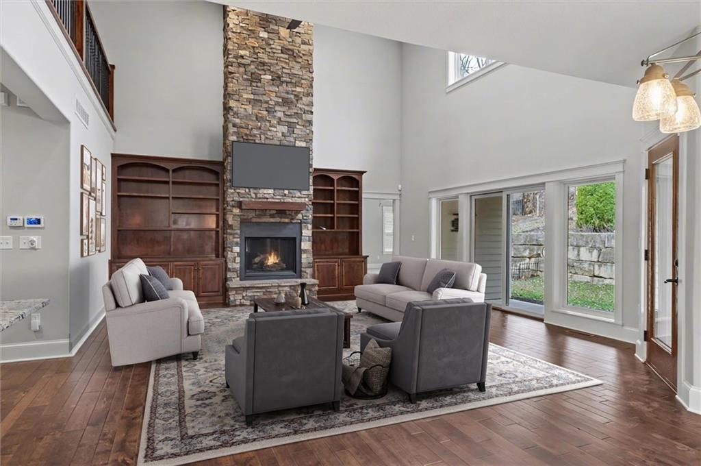 An incredible opportunity to own this one-owner home showcasing quality craftsmanship and thoughtful design throughout From the welcoming front porch to the soaring two-story living room, this home makes an immediate impression. The main level offers true convenience with a spacious primary suite, dedicated office, and laundry. The expansive living room is anchored by a stunning floor-to-ceiling stone fireplace and dramatic ceilings that fill the space with natural light. A beautifully curved staircase adds architectural character and leads to the upper level featuring three additional bedrooms, two baths, a bonus finished space, and a walkway overlooking the main living area below. Designed for seamless entertaining, the screened back porch creates a private retreat complete with its own fireplace, space for an outdoor TV, and an adjacent covered patio which is perfect for year-round indoor-outdoor gatherings. The finished basement adds exceptional versatility with a tiled wet bar area featuring a sink and full-size refrigerator, a fifth bedroom, additional bathroom, and abundant storage space. This thoughtfully designed home offers comfort, functionality, and timeless style. If you’ve been waiting for the right opportunity, this is it. Schedule your private showing today.
