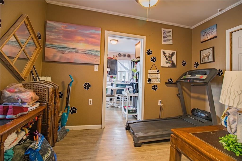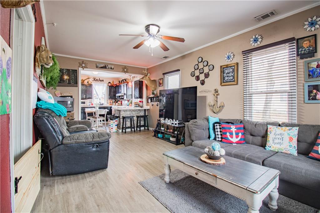 Move-in ready home! This adorable ranch style home has been thoughtfully remodeled in 2019 from top to bottom. The open floor plan is perfect for hosting and entertaining. The kitchen is equipped with appliances, generous counterspace, charming painted cabinets with lots of storage, a breakfast bar, and a view of the fenced-in backyard. You'll enjoy the primary bedroom with an ensuite bathroom that features an extra-deep bathtub/shower, and a walk-in closet. The secondary bedroom is perfect for an office or guest room. The home features a separate laundry room with shelving space for convenience. The newer 10x20 back deck is perfect for grilling during the warm months. Updates completed in 2019 include: all new flooring, paint, interior doors, ceiling fans, and crown molding. Washer and dryer stay with the home.