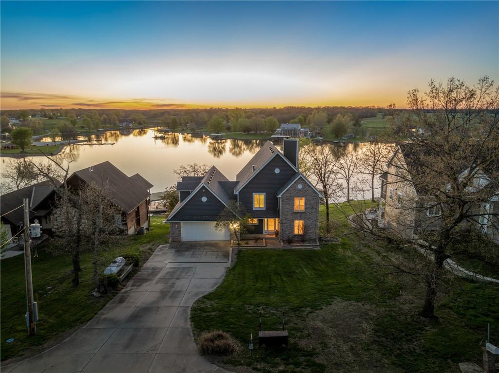 Attention Lake Lovers! Get ready to dive into the ultimate waterfront retreat with this incredible turn-key home featuring breathtaking views and everything you need to start living the lake life immediately. Just bring your suitcase and your lake clothes, the fun starts on day one. This home has been thoughtfully updated with a new roof, new siding, two new HVAC systems zoned for maximum comfort, and some new windows, giving you peace of mind and efficiency year-round. Outside, the concrete boat dock is ready for action with a lift, swim platform, and jet ski port and yes, 2 jet skis are included! A new stone retaining wall frames the lakeside patio, complete with landscaping, a pergola for shaded summer afternoons, and a lakeside shed to store all your water toys. Inside, you’ll find 3 spacious bedrooms plus a bonus bunk room on the main level and a non-conforming 4th Bedroom in the finished basement. With 4 full bathrooms this is perfect for hosting family and friends. The cathedral vaulted ceiling soars 30' high making a stunning first impression, while fireplaces in both the great room and the finished basement create cozy spaces to unwind. The basement wet bar is ready for entertaining after a full day on the water. Need garage space? The nearly 40-foot-deep 4-car garage provides exceptional room for vehicles, boats, and all your lake gear. Beautifully maintained, move-in ready, and packed with upgrades — this lakefront gem truly has it all. Start living the lake lifestyle you’ve been dreaming about!