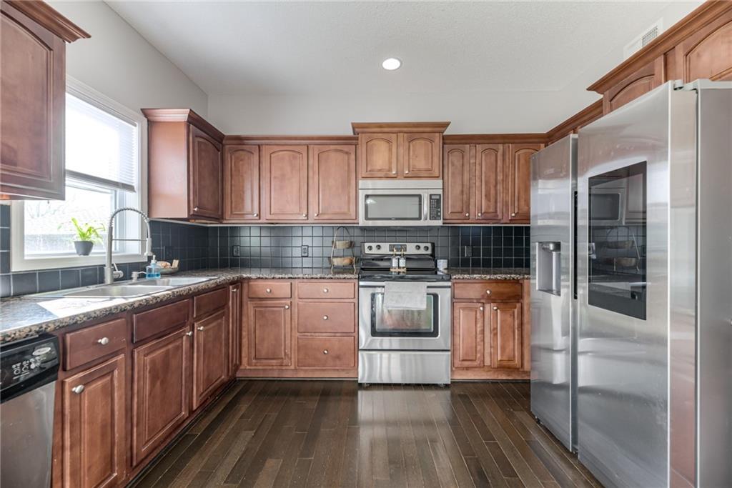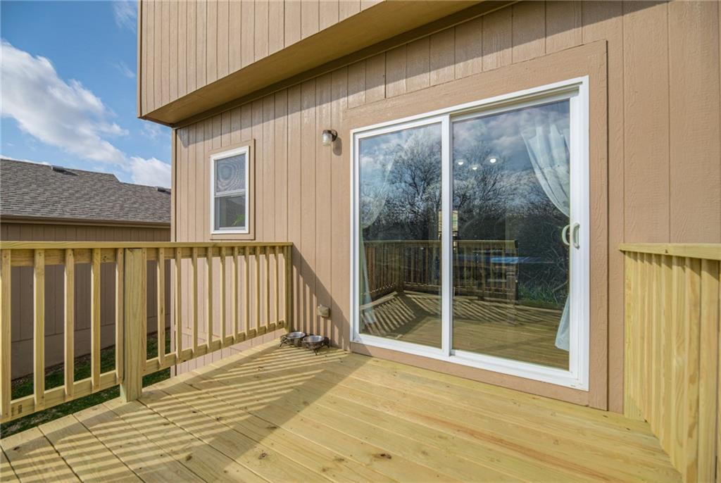 Welcome to 1237 Budd Circle. This 3-bedroom, 2.5-bathroom half duplex boasts 1,828 finished square feet of living space, featuring a versatile walk-out basement that opens to a private treeline behind the property. This house is move in ready with a NEW ROOF installed earlier this year and a freshly repainted interior. Grab your morning coffee and stroll straight from the kitchen onto your newly rebuilt deck to enjoy the serene, wooded views. All three bedrooms are conveniently tucked away on the second floor, including a spacious primary suite complete with an en-suite bathroom and double vanity. Location truly matters, and this home delivers. Whether you want to enjoy a quiet stroll around the neighborhood, explore local parks and trails, or indulge in premier shopping and dining, everything you need is just a stone’s throw away. You are less than 10 minutes from: Legends Outlets & Village West The Kansas Speedway Wyandotte County Lake & Park (1,500+ acres of outdoor recreation)