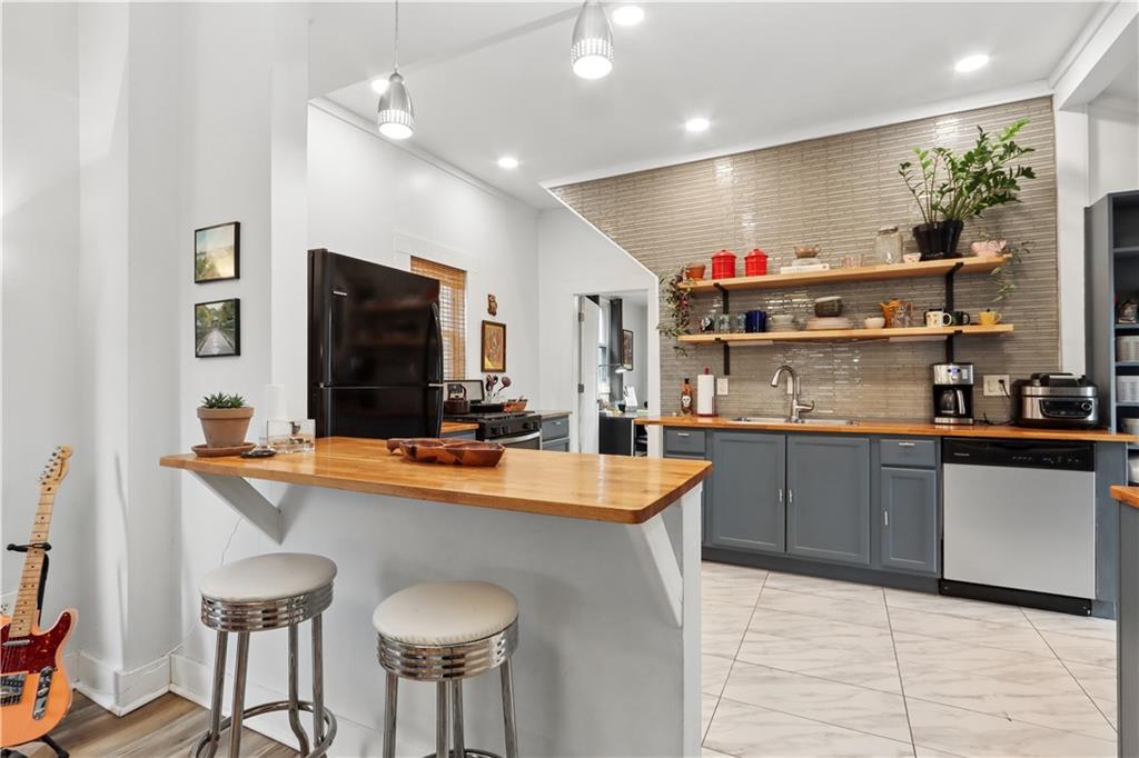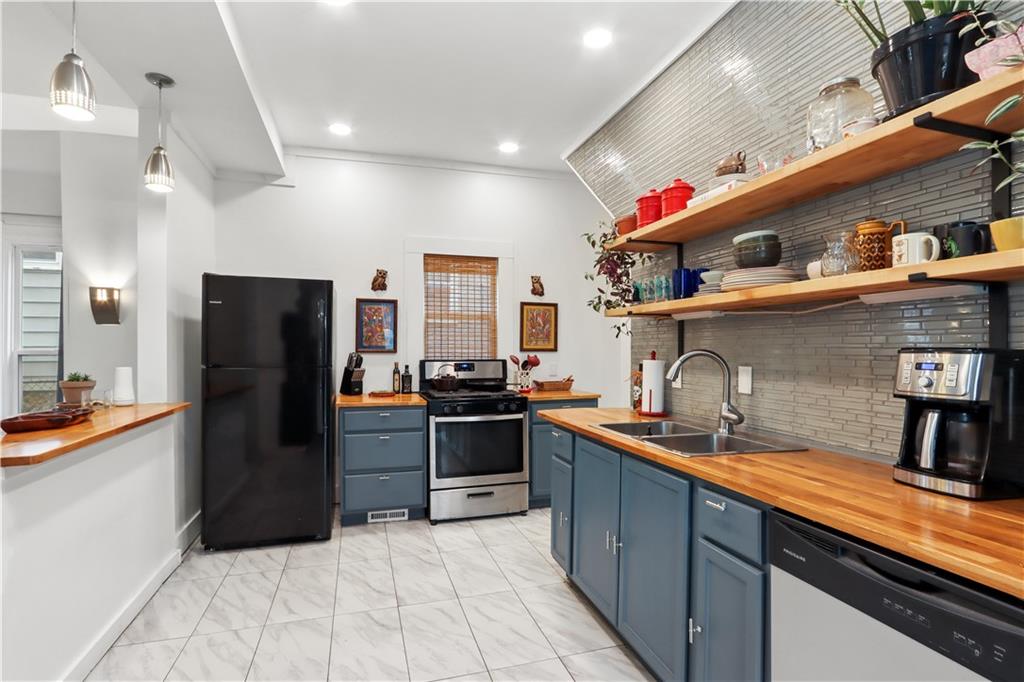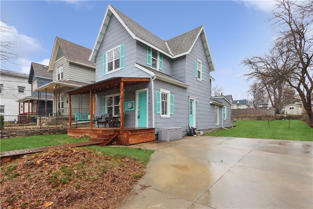 This bright, open floor plan was fully remodeled 6 years ago- roof, HVAC, water heater and sewer line 7 years old or less! On the first floor you'll find the living room, half bath, spacious dining room with an atrium reading nook, a stylish kitchen with tons of storage and open shelving, plus a hard to find main floor bedroom with full bathroom that opens to the large, partially fenced back yard! This room also makes a great family room with laundry hookups in the closet if you prefer. The 2nd floor offers 2 large bedrooms, huge walk in closet and large bathroom with more laundry hookups! Inviting front porch and back patio are great for relaxing with your favorite beverage or entertaining. Private drive big enough for 4 cars!