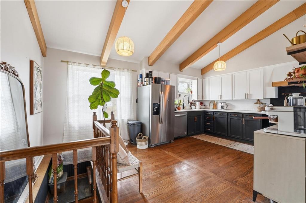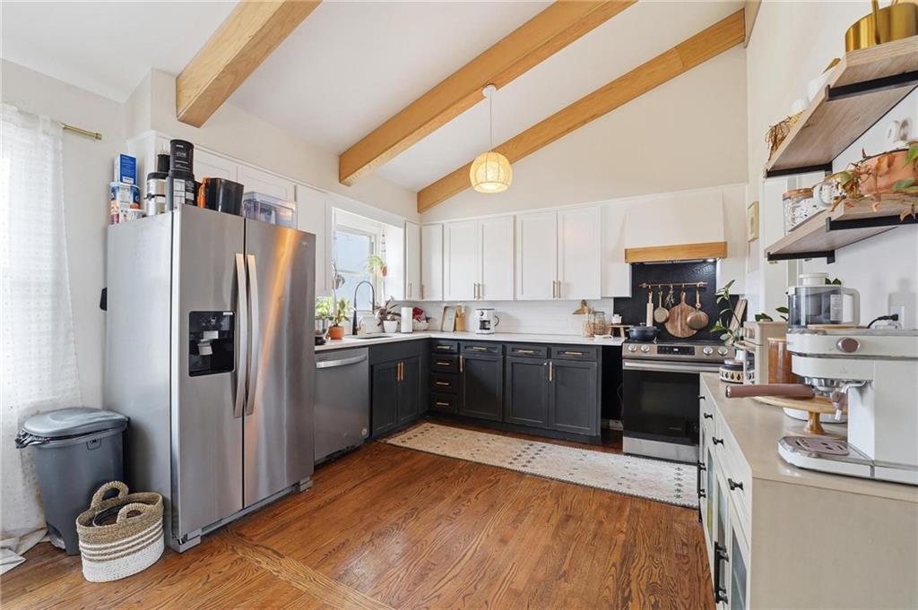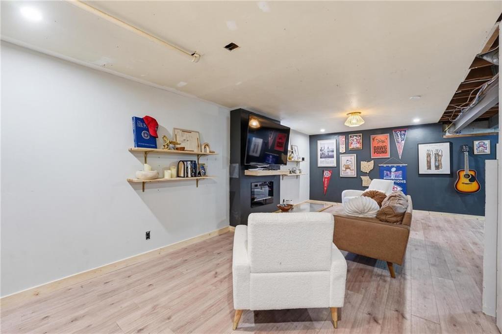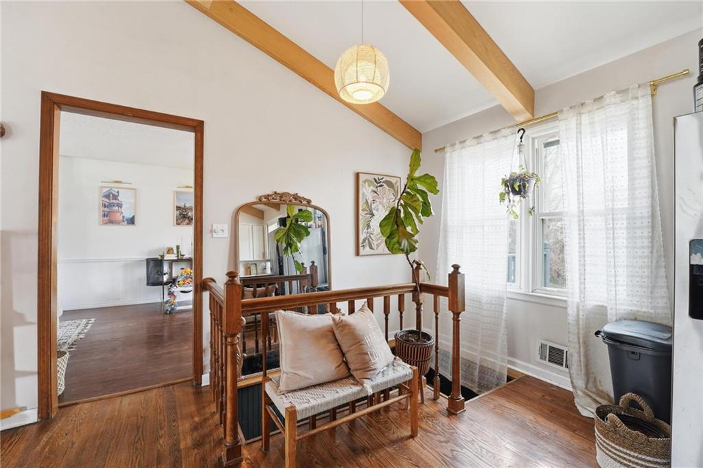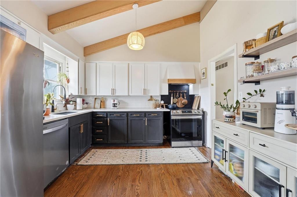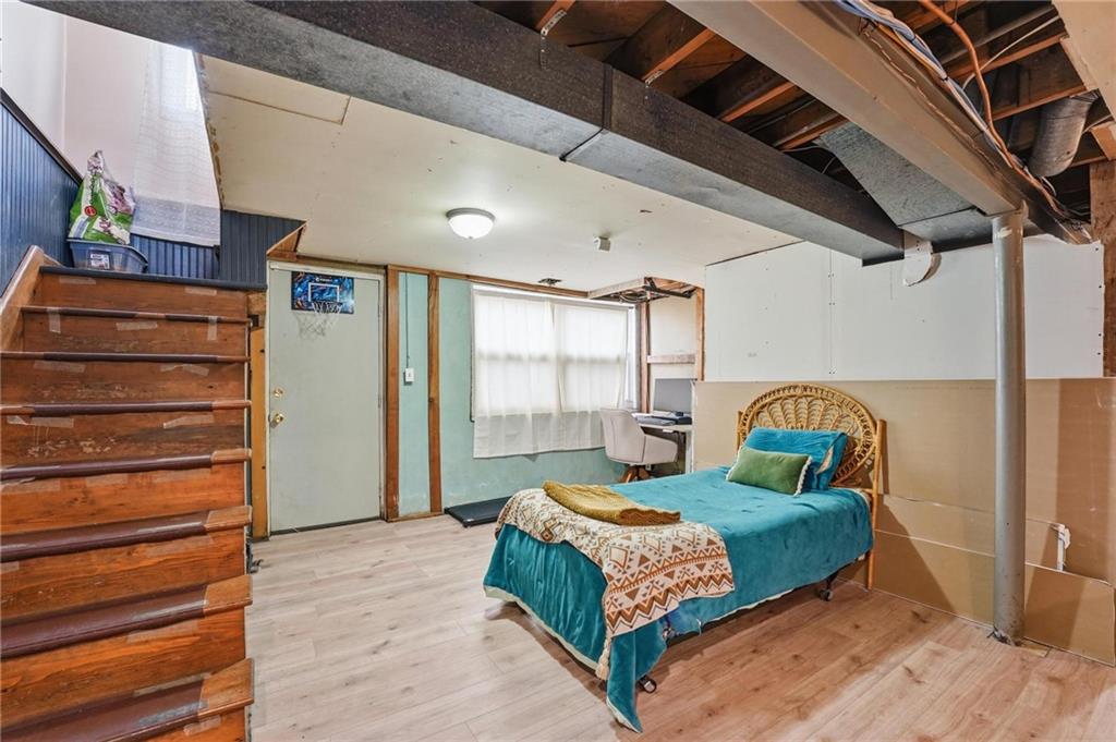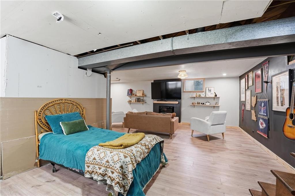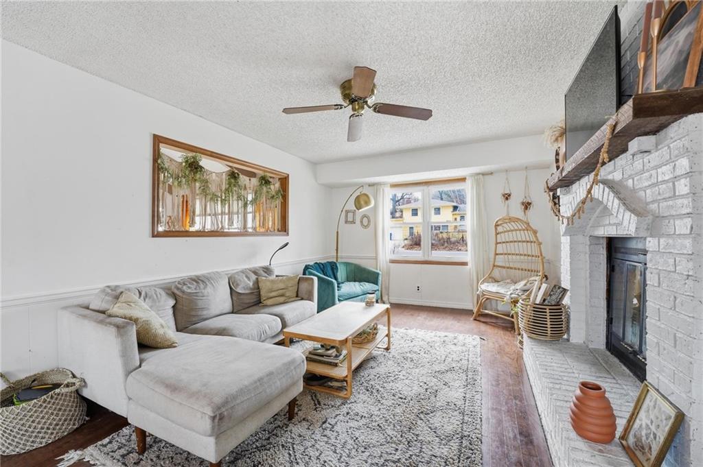 Welcome home to this charming 3-bedroom, 1-bath home that offers comfortable living and great functional space. Hardwood floors flow throughout the main level, adding warmth and character. The inviting family room features a cozy wood-burning fireplace, perfect for relaxing evenings at home. The open kitchen features stainless steel appliances and quartz countertops, creating a bright and functional space for cooking and gathering. Enjoy the flexibility of two separate living areas, providing plenty of room for entertaining, working from home, or creating a play or media space. The partially finished walkout basement offers even more usable space with a dedicated workout area and abundant storage. Step outside to the deck overlooking the fenced backyard, ideal for outdoor dining, pets, gardening, or simply enjoying the outdoors. With a practical layout and great indoor and outdoor spaces, this home is a wonderful opportunity for comfortable everyday living.