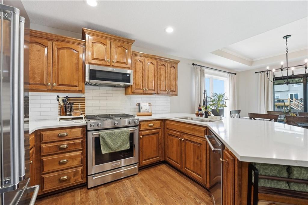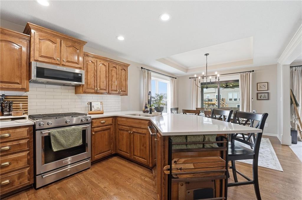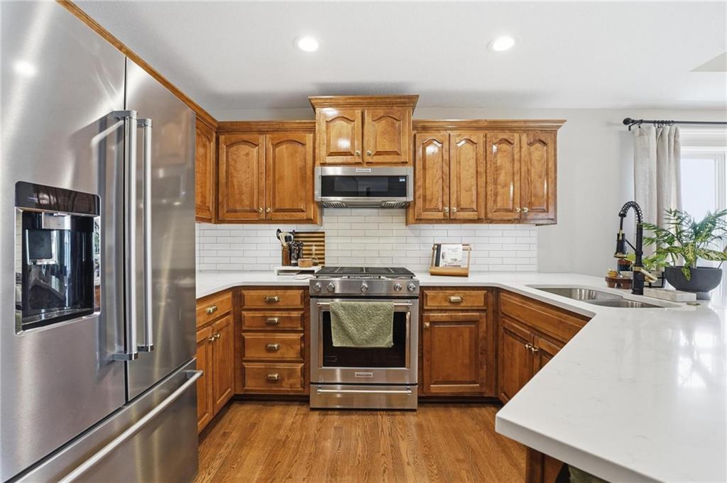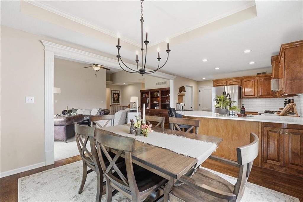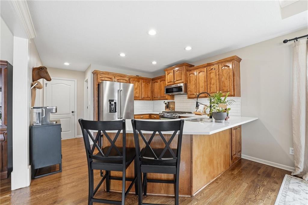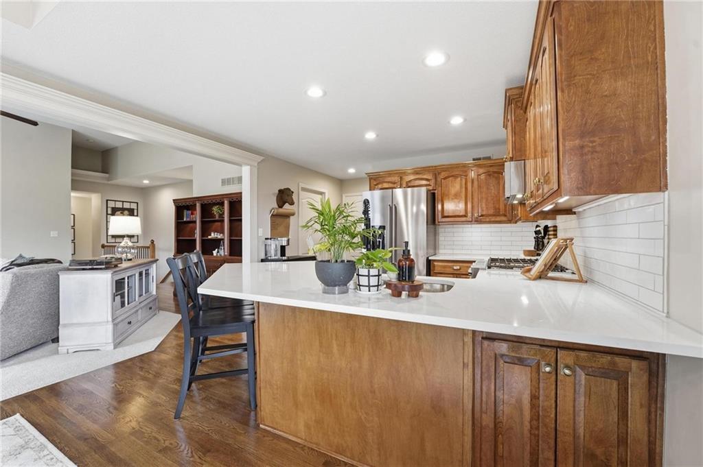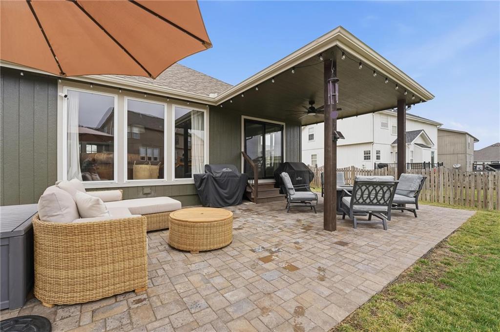Picture-perfect and truly move-in ready, this impeccable 3-bedroom ranch delivers effortless main-level living with thoughtful upgrades throughout. An open floor plan, gorgeous hardwood floors, and brand-new carpet create a warm, welcoming feel from the moment you step inside. The stunning updated kitchen is the heart of the home, featuring quartz countertops, a stylish tiled backsplash, stainless steel appliances, and a gas convection range — ideal for both everyday living and entertaining. Primary bedroom features ensuite bath with double vanity, shower, tub, walk in closet and tiled floors. The full unfinished basement, already stubbed for a full bath, offers incredible potential for future expansion — whether you envision additional living space, a home gym, media room, or private guest suite. Step outside to the fenced yard with covered paver stone patio, the perfect setting for morning coffee, summer grilling, or relaxing evenings under the lights. With over $85,000 in recent upgrades — including a 40-year roof, tankless water heater, exterior paint, irrigation system, new exterior doors, updated appliances, and more — this home offers peace of mind along with polished style. Located within the award winning Lee's Summit School District.